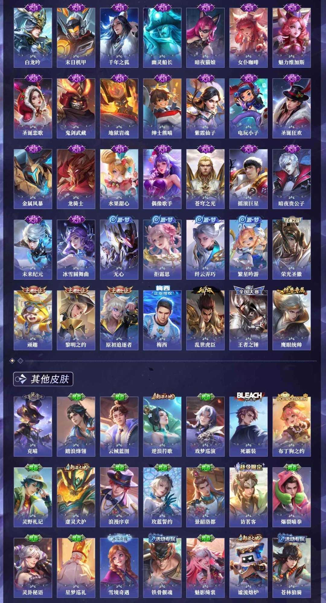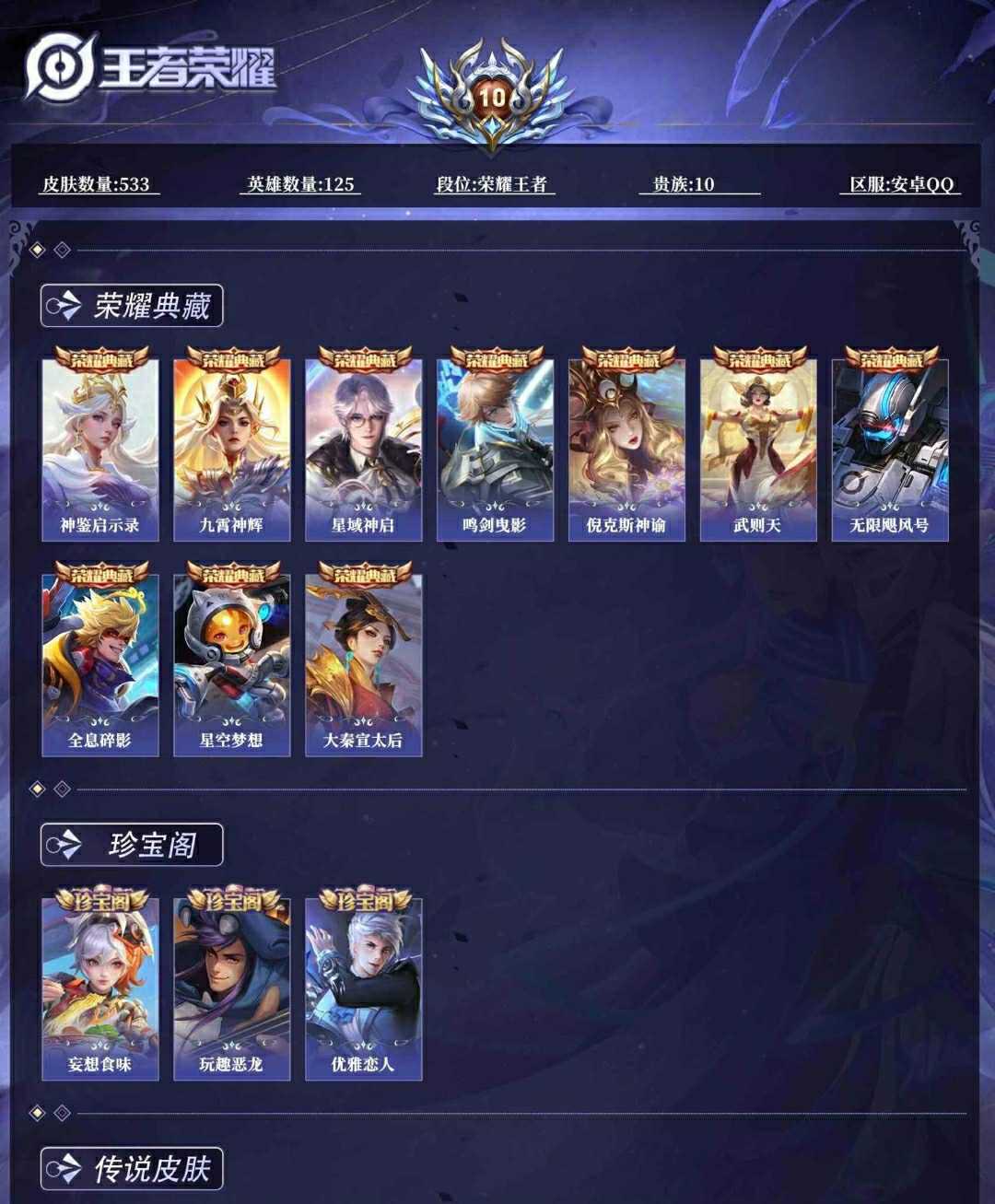 【C157】贵族V10~518皮肤9水晶80传说落雪白狼,情瑶,逐花归海神鉴启示录,星域神启,倪克斯