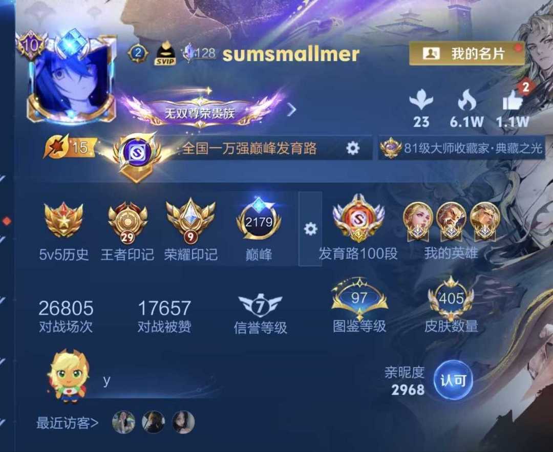 现巅峰2100⭐405皮无双v10可共享⭐巅峰发育路⭐3月正式服在榜省标元流之子⭐三国服⭐禁巅峰
