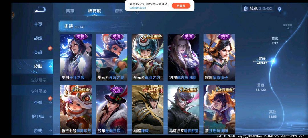 限制: 撤单率<70%才可租用此帐号装备描述:>>>>>>毁号,涉及毁坏虚拟财产罪及计算机安全罪,请文明游戏素质游戏,让我们共建美好租号平台>>>>>> 本游戏账号: ,基础段位:至尊星耀I,英雄多,皮肤多。典藏皮肤1个,感受典藏皮肤带来的优质体验快感,FMVP皮肤3个,尽情享受FMVP皮肤带来的主角光环, 私人所属英雄皮肤有:孙尚香 杀手不太冷貂蝉 仲夏夜之梦||娜可露露 前尘镜||狄仁杰 超时空战士||大乔 挚爱花嫁||鲁班七号 寅虎·瑞焰||周瑜 音你心动||虞姬 启明星使||李信 一念神魔||伽罗 太华||杨戬 永曜之星||虞姬 云霓雀翎,等等 注意事项: A.游戏过程中请不要恶意挂机或者不文明发言;B.恶意挂机、顶号等行为将被拉黑无法再次下单;C.进入游戏后中途请勿退出登陆,否则无法再次上号;D.部分账号由于异地登录可能会出现密码错误提示,通常再尝试5-6次后可上号。 |||||||||>喜欢本账号请点 ☆收藏☆ 方便下次租用,谢谢光临惠顾|||||||||