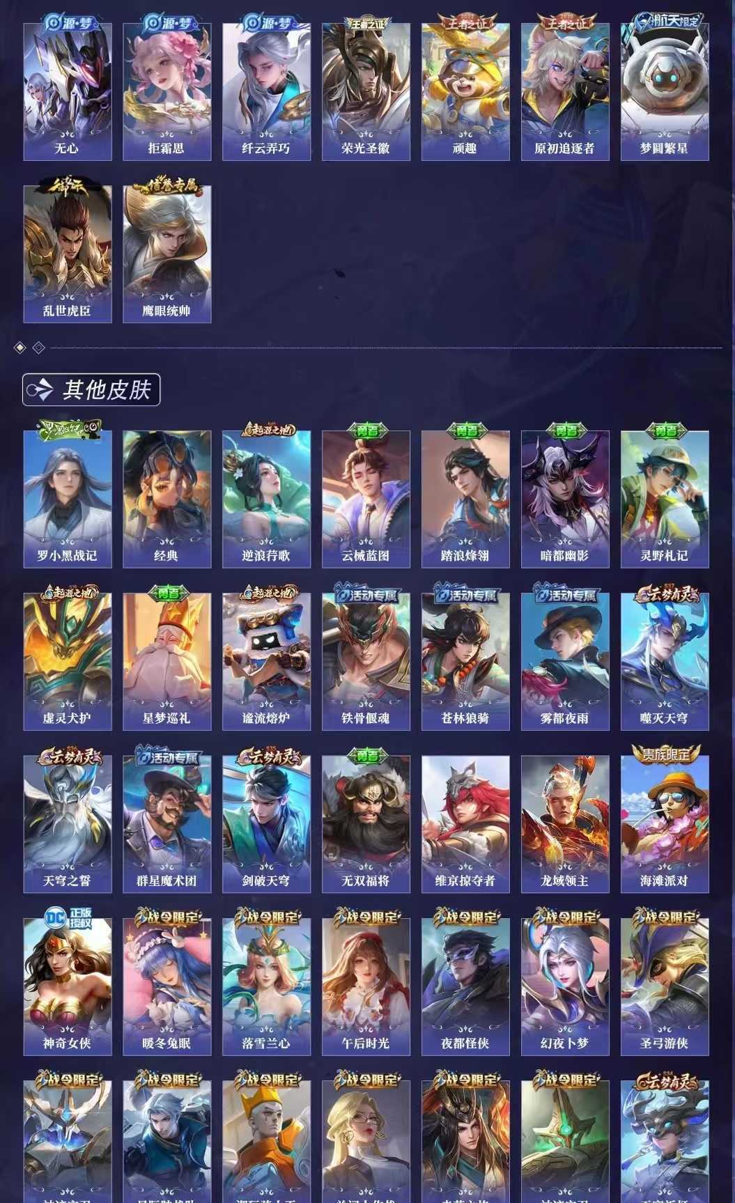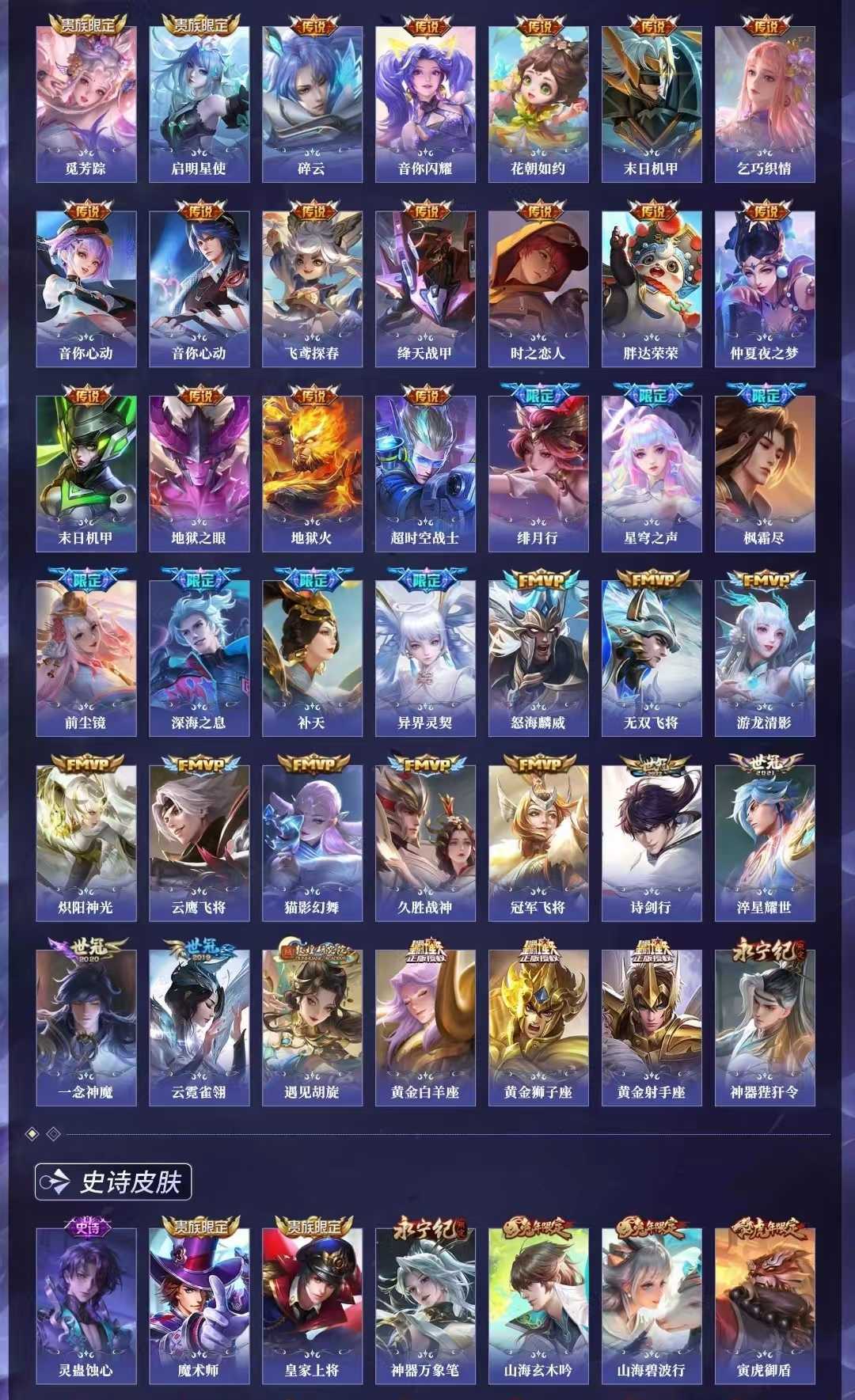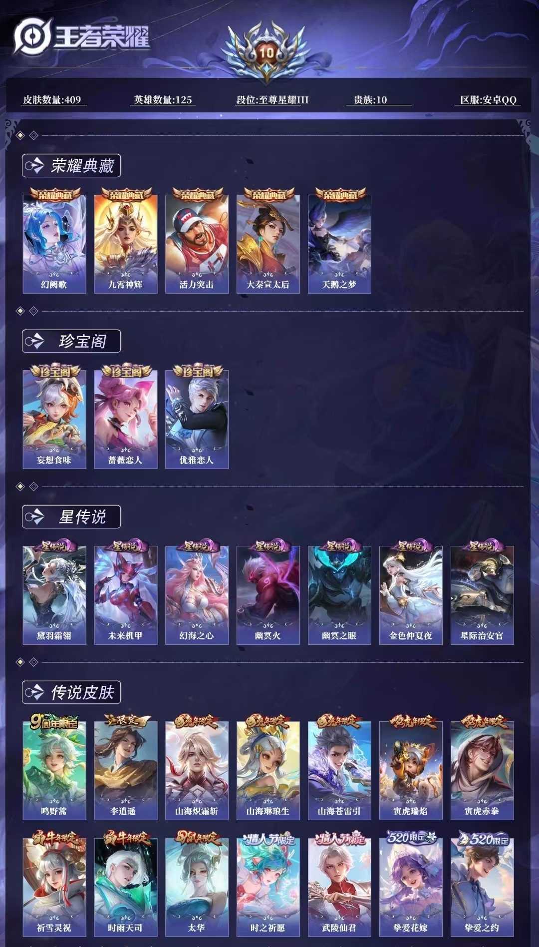 【C72】贵族V10~410皮6典藏56传说幻阙歌,九霄神辉,活力突击,天鹅之梦,大秦宣太后【优质限
