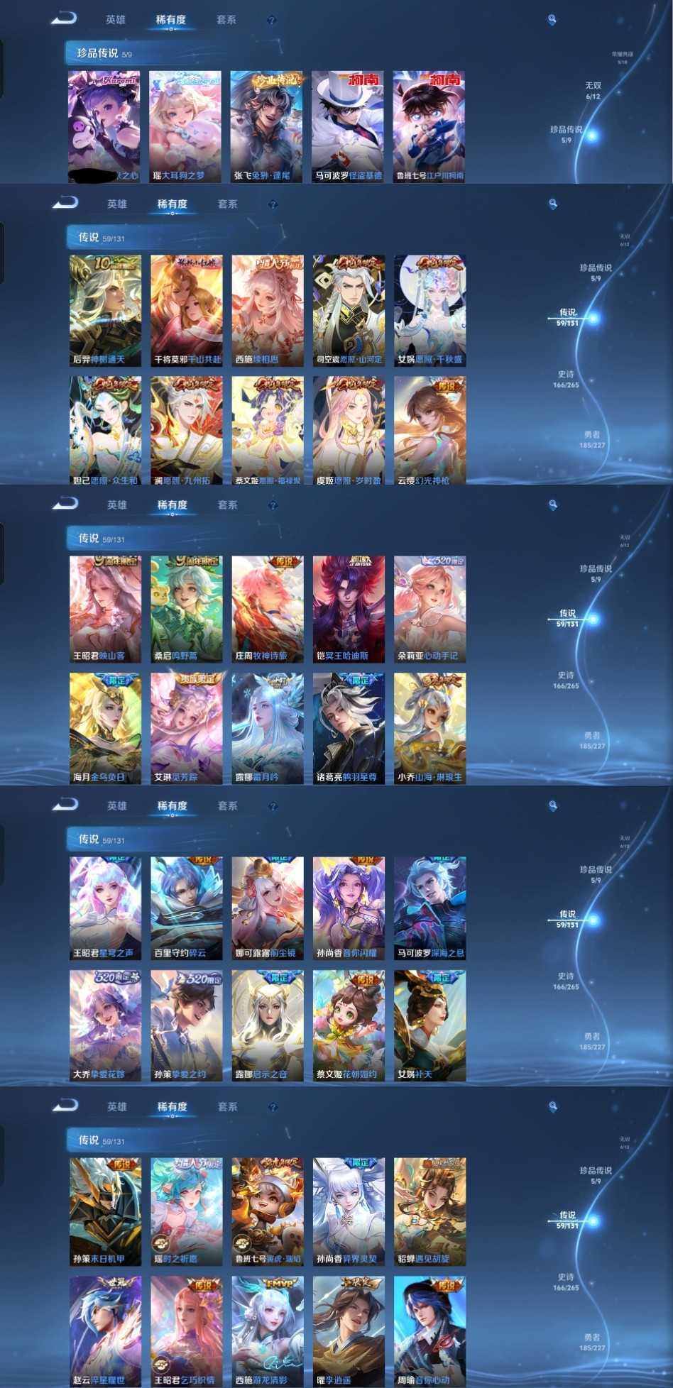 限制: 租号2次及以上 | 撤单率<49%才可租用此帐号装备描述:时间到了还登录白玩或者顶号全部改密拉黑处理永不解除,顶号机器会秒禁玩改密,顶号不仅拉黑还没得玩,赚三两块不容易,请理解谢谢。 ❤❤❤❤❤❤❤❤❤❤❤❤❤❤❤❤❤❤ 请勿开挂,挂机,送头,骂人,撤单后游戏等如有违规永久拉黑永不解除。 重置二级密码不要费劲了,号主每天都会上号查看,多行不义必自毙,人在做天在看,多做好事多自律,少做缺德事。 该号英雄128个皮肤506个,珍品无双1个,典藏6个,无双6个,珍品传说5个,星传说11个,传说59个,史诗166个,祝你游戏愉快