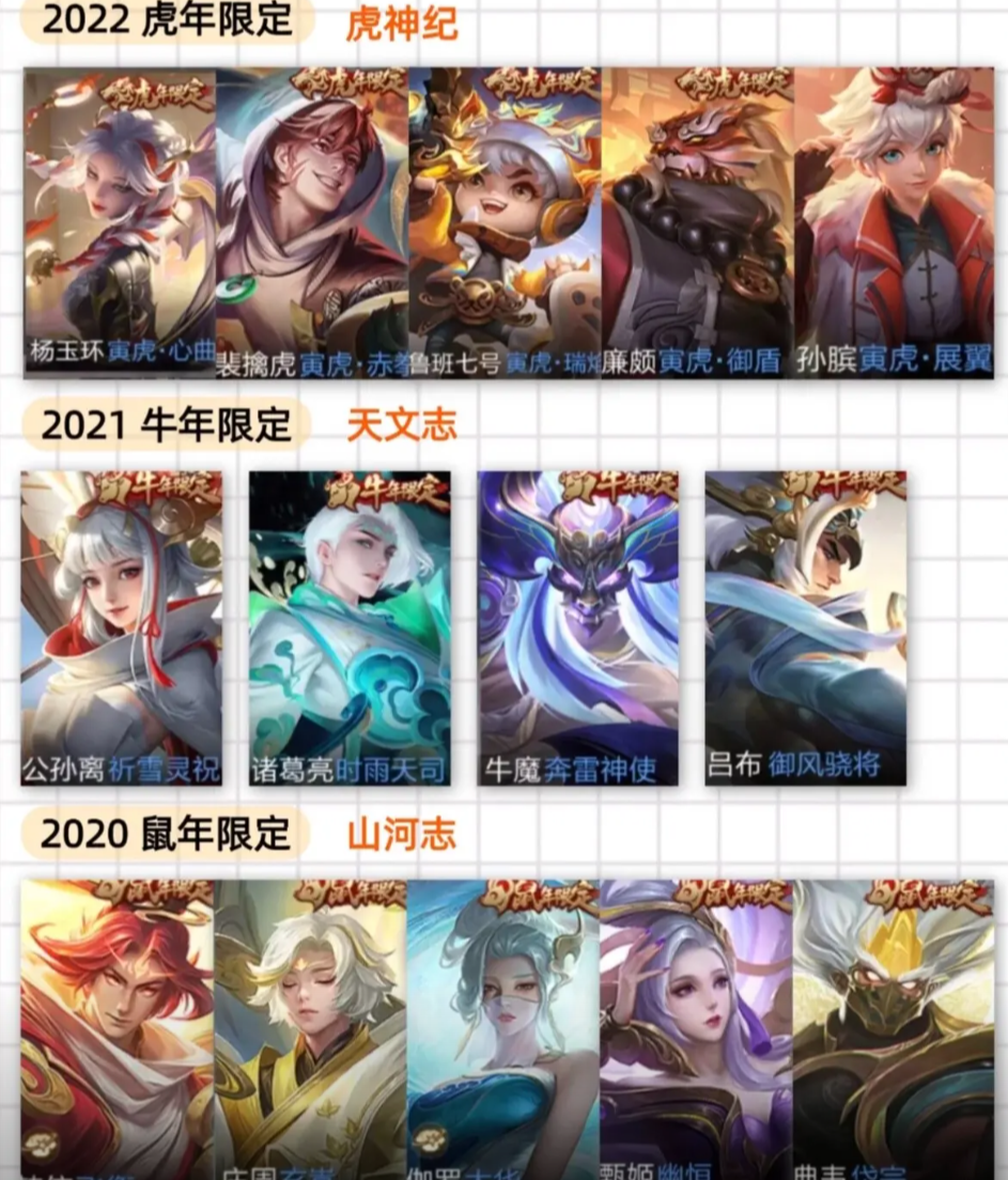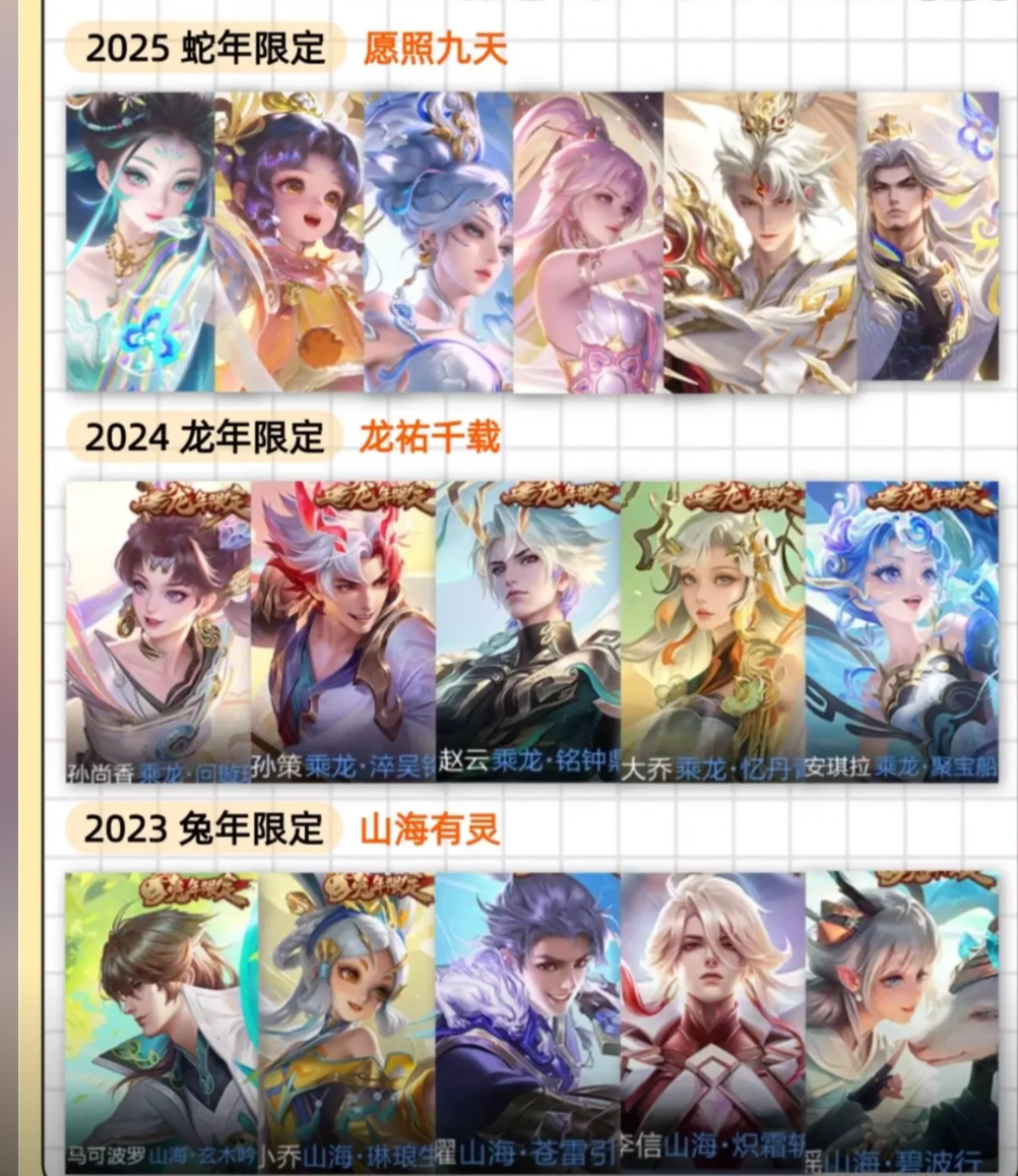 装备描述:雄:孙悟空(孙悟空 齐天大圣,孙悟空 西部大镖客);太乙真人;王昭君(王昭君 偶像歌手);海月(海月 幻泉雾影);赵怀真;夏侯惇(夏侯惇 乘风破浪);莱西奥(莱西奥 踏浪烽翎,莱西奥 光弋星穹,莱西奥 西部游侠);项羽(项羽 海滩派对);小乔(小乔 缤纷独角兽,小乔 秘证寻踪,小乔 丁香结);雅典娜(雅典娜 战争女神,雅典娜 潮玩士官长);孙权(孙权 径山谋武);亚瑟(亚瑟 死亡骑士,亚瑟 荣光之誓);杨戬(杨戬 埃及法老,杨戬 潮玩骑兵,杨戬 天秀·启明);苍(苍 苍林狼骑);杨玉环(杨玉环 霓裳曲);弈星(弈星 踏雪寻梅);虞姬(虞姬 加勒比小姐,虞姬 夏日便利店);张飞(张飞 乱世虎臣);张良(张良 灵野札记,张良 古海寻踪,张良 缤纷绘卷,张良 罗小黑战记);赵云(赵云 淬星耀世,赵云 白执事,赵云 皇家上将,赵云 忍·炎影);金蝉(金蝉 前尘);甄姬(甄姬 逆浪荇歌,甄姬 落雪兰心,甄姬 冰雪圆舞曲,甄姬 花好人间);钟馗(钟馗 驱傩正仪,钟馗 虚灵犬护);钟无艳(钟无艳 超时空战士,钟无艳 海滩丽影);周瑜(周瑜 熔金海岸,周瑜 百相守梦);蒙恬(蒙恬 秩序猎龙将,蒙恬 蔚