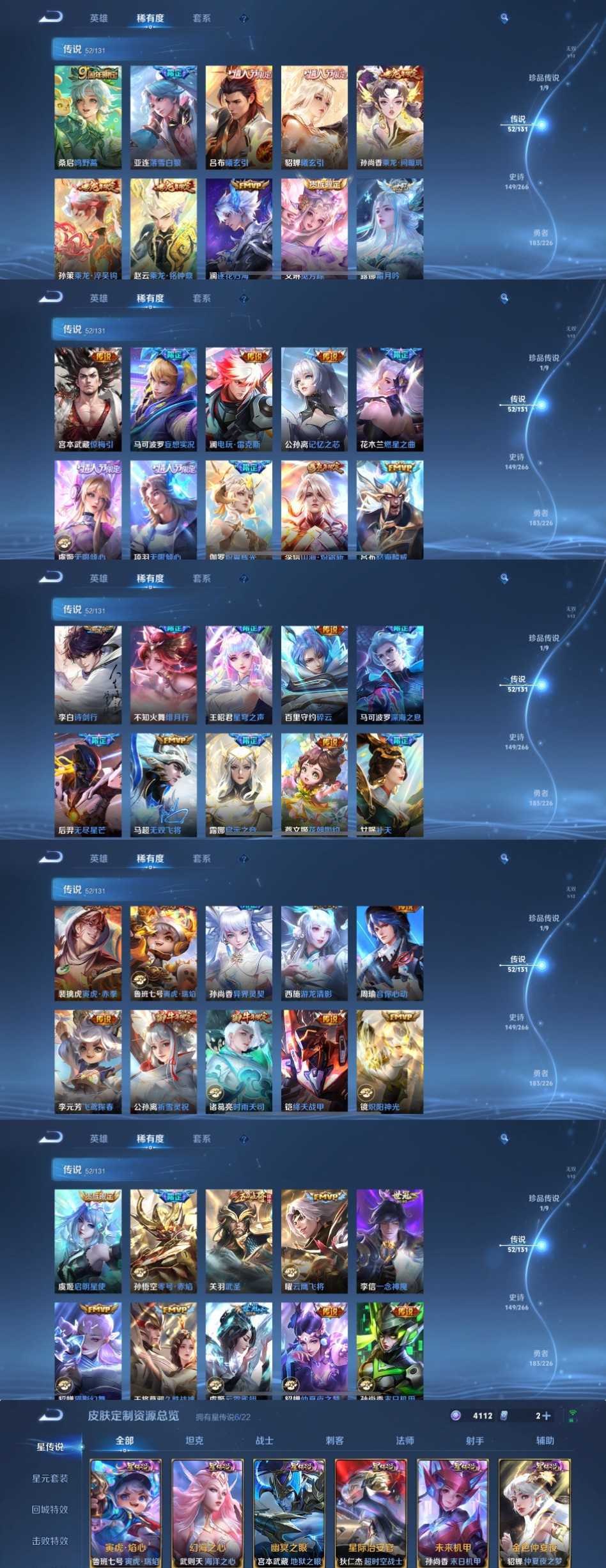 限制: 租号2次及以上 | 撤单率<49%才可租用此帐号装备描述:时间到了还登录白玩或者顶号全部改密拉黑处理永不解除,顶号机器会秒禁玩改密,顶号不仅拉黑还没得玩,赚三两块不容易,请理解谢谢。 ❤❤❤❤❤❤❤❤❤❤❤❤❤❤❤❤❤❤❤ 请勿开挂,挂机,送头,骂人,撤单后游戏等如有违规永久拉黑永不解除。 重置二级密码不要费劲了,号主每天都会上号查看,多行不义必自毙,人在做天在看,多做好事多自律,少做缺德事。 该号英雄127个皮肤473个,典藏5个,无双1个,珍品传说1个,星传说5个,传说52个,史诗149个,祝您游戏愉快~