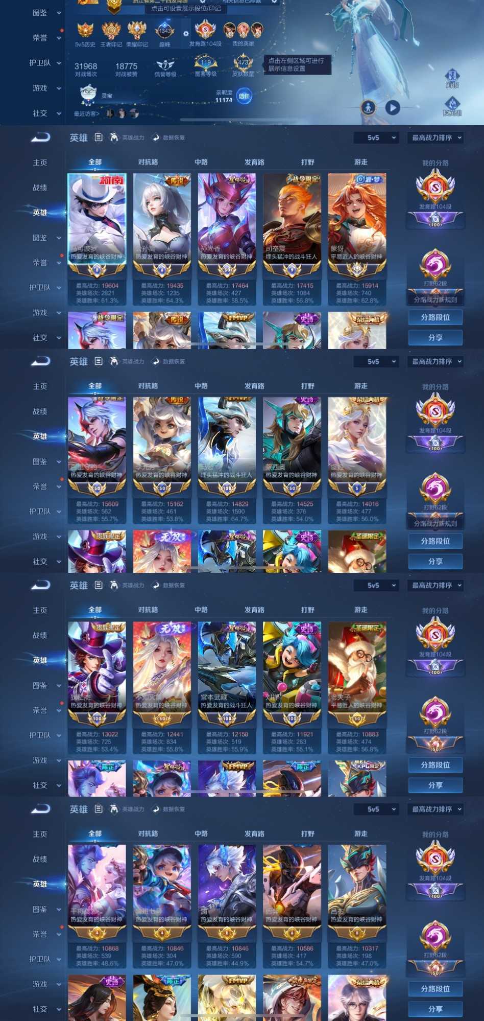 百段发育路104段✨一万九国服马克一万九国服公孙离✨国服孙尚香国服司空震✨大国服蒙犽国服李元芳马超