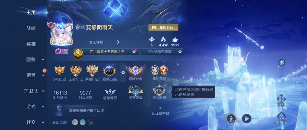 双省标瑶元辅⭐无双贵族十⭐巅峰游走闪电框⭐可排位/禁巅峰/禁挂机