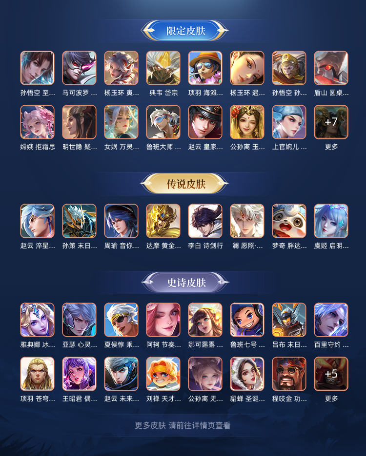 装备描述:典韦(典韦 铁甲之心,典韦 铁骨偃魂,典韦 黄金武士,典韦 战鼓燎原,典韦 岱宗,典韦 穷奇,区标);铠(铠 龙域领主,铠 冥王哈迪斯,区标);孙尚香(孙尚香 蔷薇恋人,孙尚香 水果甜心,孙尚香 乘龙·问璇玑);孙悟空(孙悟空 西部大镖客,孙悟空 至尊宝,孙悟空 孙行者);宫本武藏(宫本武藏 黑崎一护,宫本武藏 鬼剑武藏,宫本武藏 霸王丸,宫本武藏 万象初新);大司命(大司命 死亡执政官);马可波罗(马可波罗 激情绿茵,马可波罗 暗影游猎);虞姬(虞姬 启明星使,虞姬 加勒比小姐);司马懿(司马懿 九山相柳,司马懿 魇语军师);吕布(吕布 末日机甲,吕布 野性能量);孙策(孙策 猫狗日记,孙策 乘龙·淬吴钩,孙策 末日机甲);李白(李白 敏锐之力,李白 范海辛,李白 千年之狐,李白 诗剑行);狂铁(狂铁 龙之律动,狂铁 命运角斗场,狂铁 御狮,狂铁 特工战影);赵云(赵云 皇家上将,赵云 忍·炎影,赵云 白执事,赵云 乘龙·铭钟鼎,赵云 淬星耀世,赵云 未来纪元);澜(澜 愿照·九州拓,澜 孤猎);李信(李信 灼热之刃);达摩(达摩 黄金狮子座,达摩 拳王,达摩 大发明家);韩信(韩信