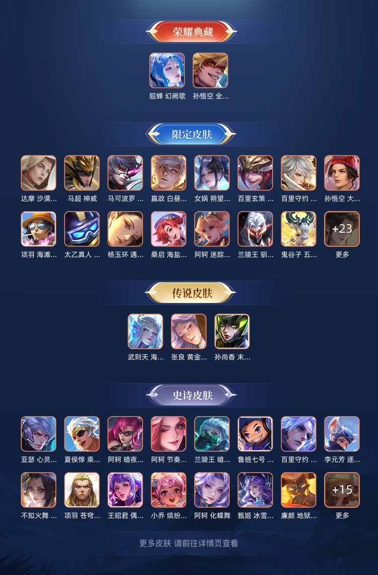 装备描述:英雄127个(无武则天) 皮肤:2典藏,5传说,70史诗