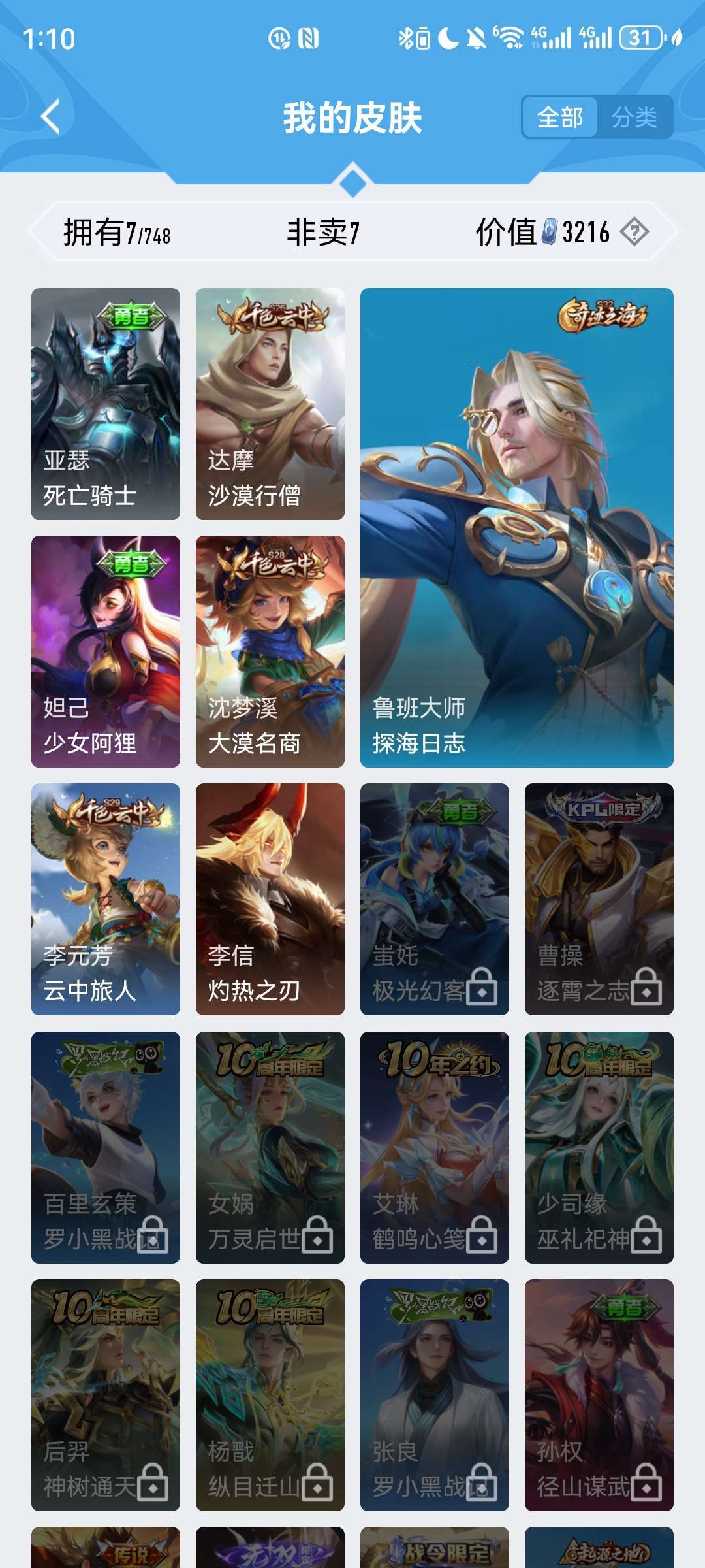 炸鱼专属❤️7皮肤、秩序白银2、42热门英雄❤️
