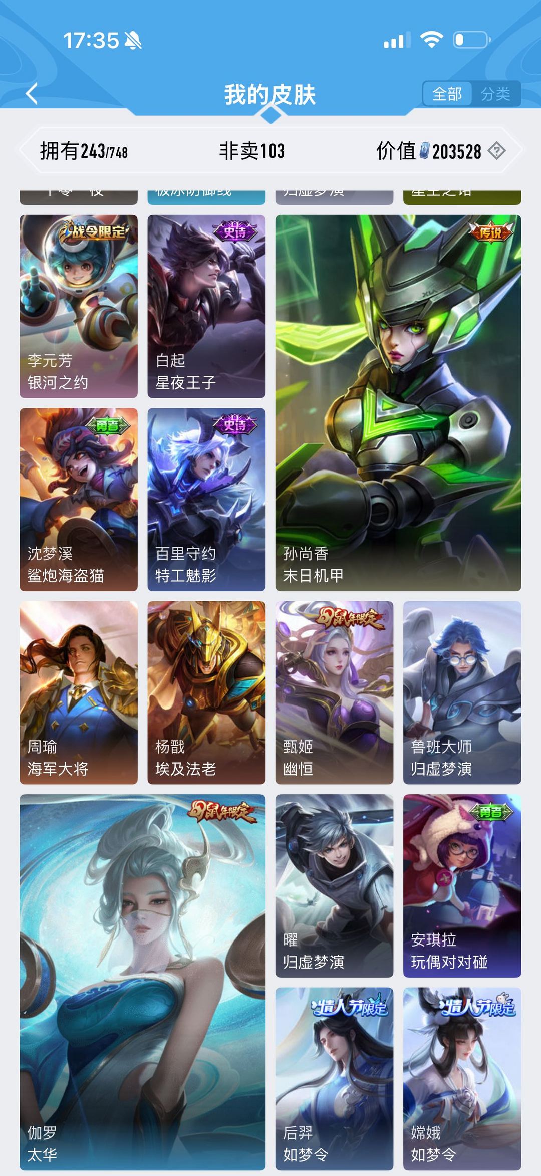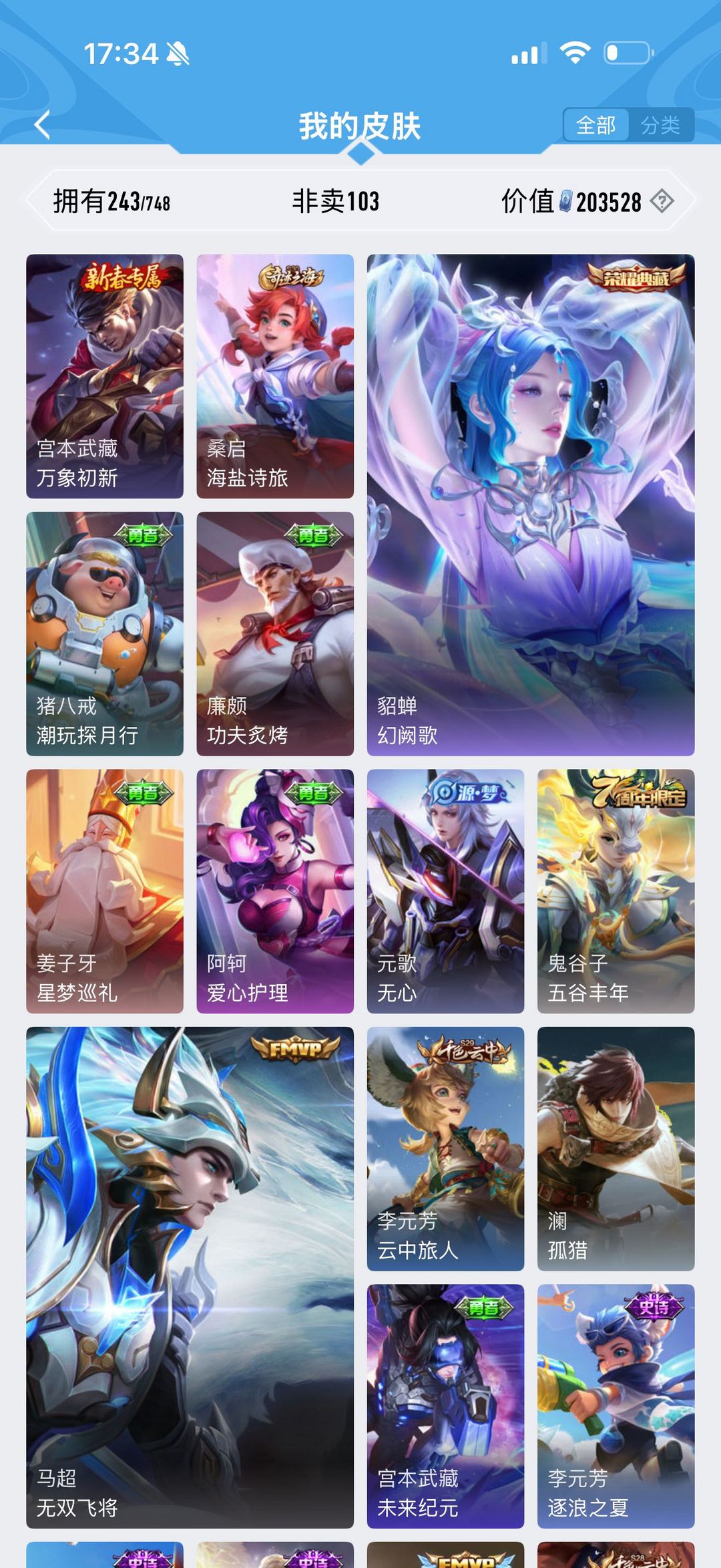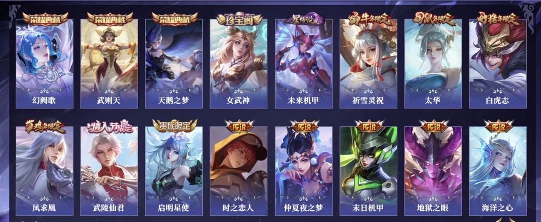贵9皮肤241典藏❤️幻阙歌❤️天鹅之梦❤️武则天❤️FMVP马超曜花木兰干将❤️梅西❤️白虎志