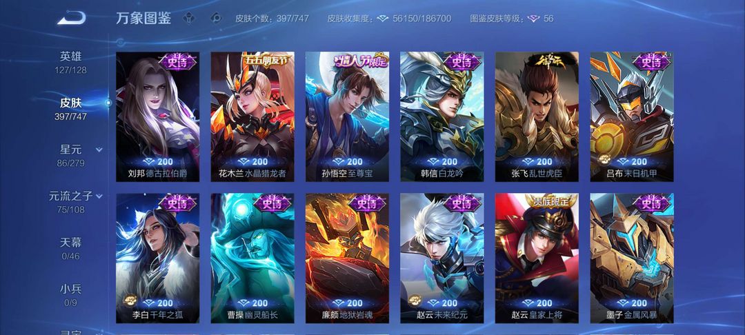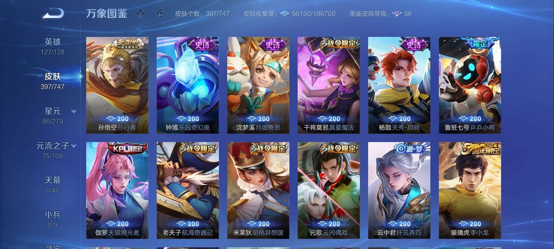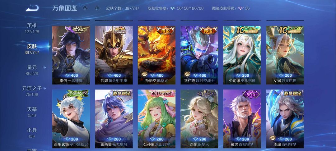 两典藏:最初的交响,星域神启,至尊宝,落星盏,孙行者,年限澜虞姬,李华星之名奏,全套铭文