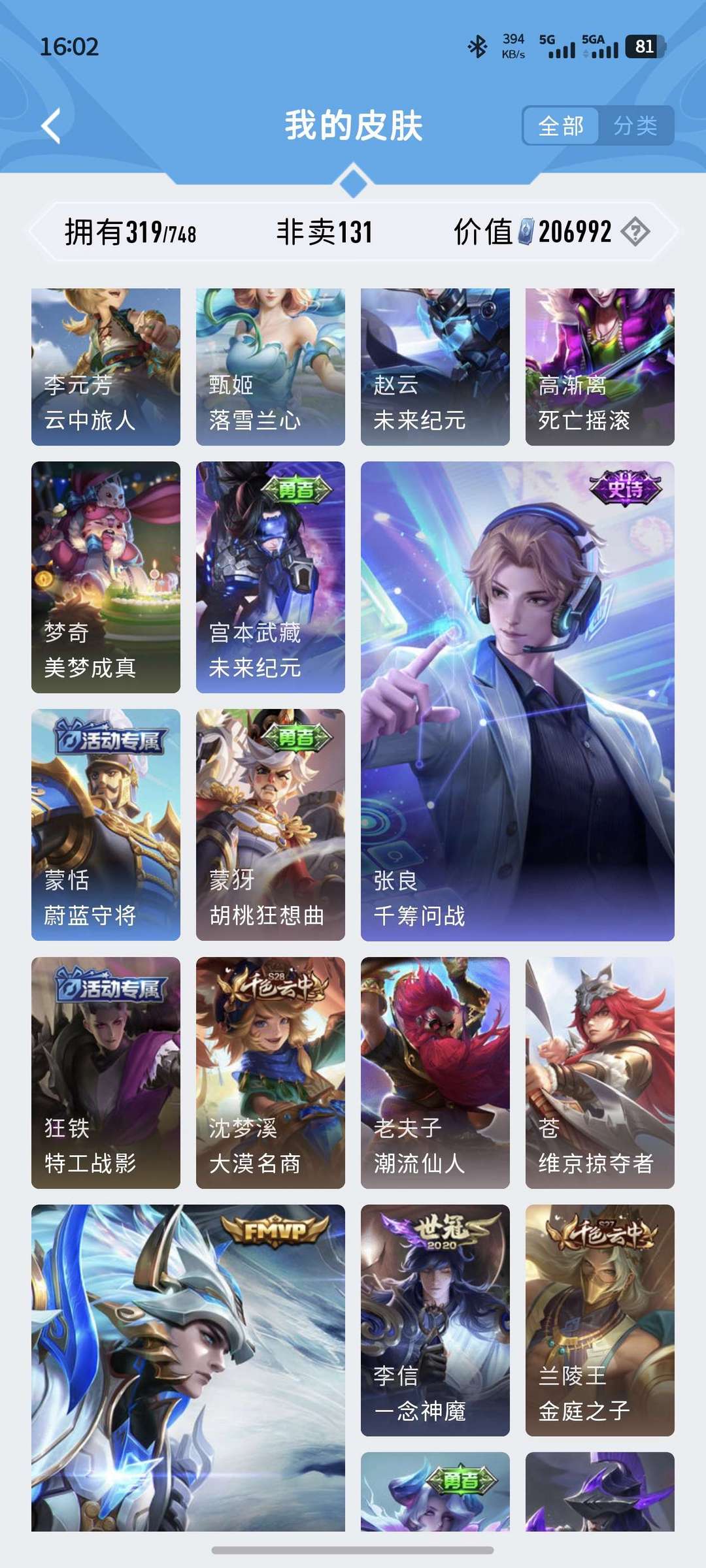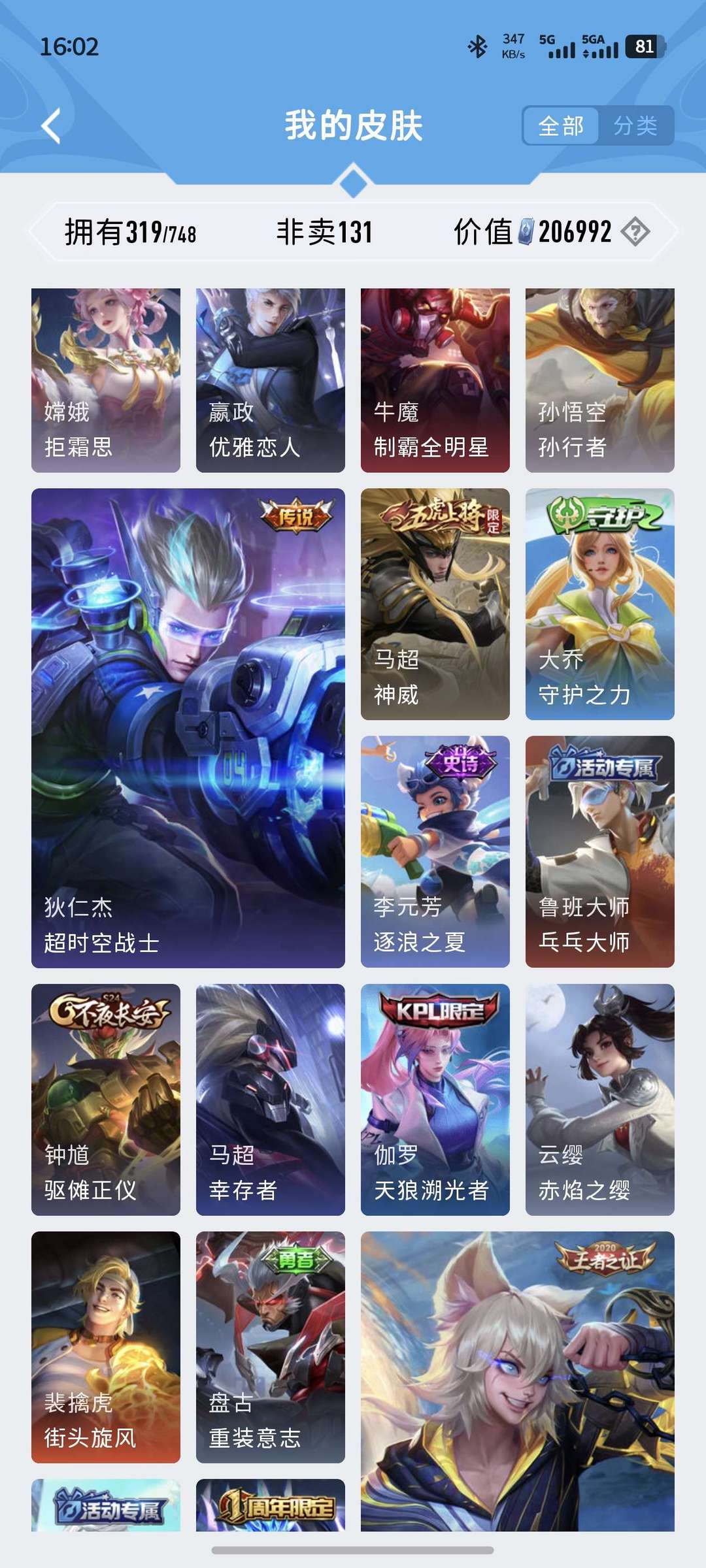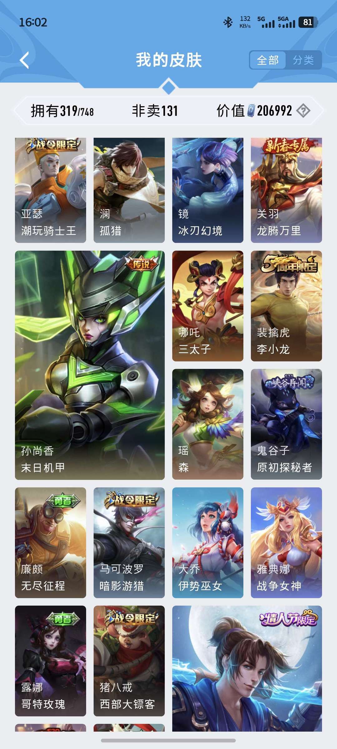 马可基本全皮,猴子两个情人节限定,马超干将FMVP,司空震澜蛇年限定,孙尚香末日机甲,诸葛亮时雨天司