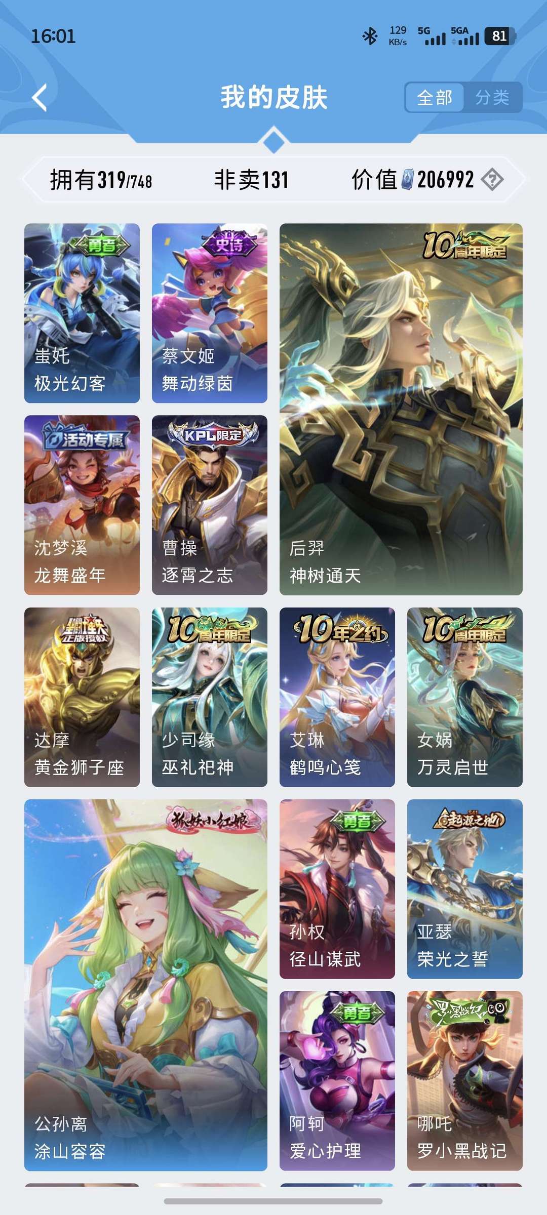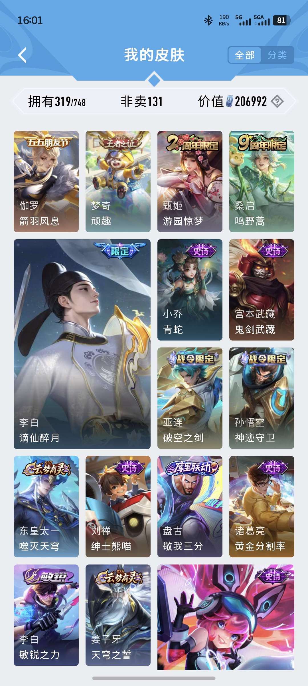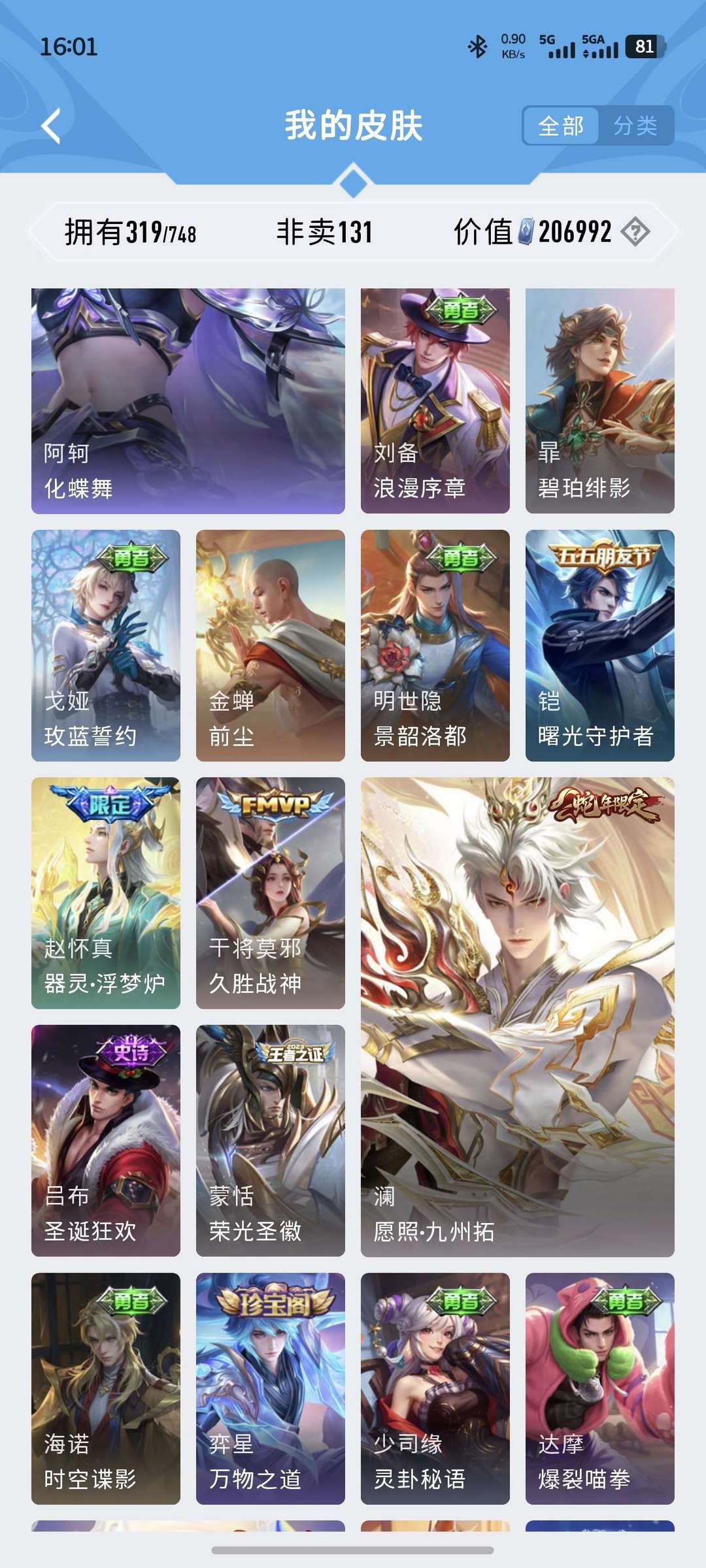 马可基本全皮,猴子两个情人节限定,马超干将FMVP,司空震澜蛇年限定,孙尚香末日机甲,诸葛亮时雨天司