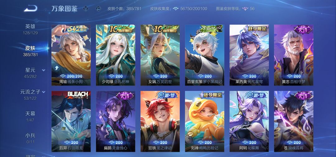 v8钻石段1典藏2无双1珍品传说17传说皮肤