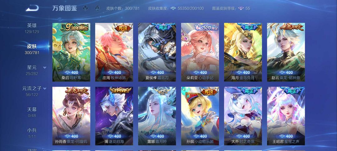 装备描述:李元芳1988星君丶娄金 韩信传说踏浪归 典韦传说战鼓燎原 韩信弑枪猎影 狄仁杰神骥·赴朔漠 澜逐花归海 露娜霜月吟 孙膑小动物乐团 大乔时之奇旅 王昭君星穹之声 百里守约碎云 王昭君 孙尚香乘龙·问璇玑 庄周牧神诗旅夏侯惇霜北刀朵莉亚心动手记 杨戬纵目迁山 关羽神骥·镇沧海貂蝉神骥·聚万邦 花木兰异界灵契 朵莉亚神骥·鸣幻洲 海月金乌负日 赵云乘龙·铭钟鼎嬴政传说限定玄雷天军 曜器灵·螭龙剑 公孙离无双离恨烟 伽罗珍品沧流箭 李白无双碎月剑心 宫本武藏 地狱之眼 星传说 王昭君FMVP 嫦娥珍品传说