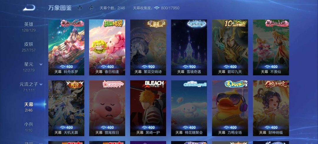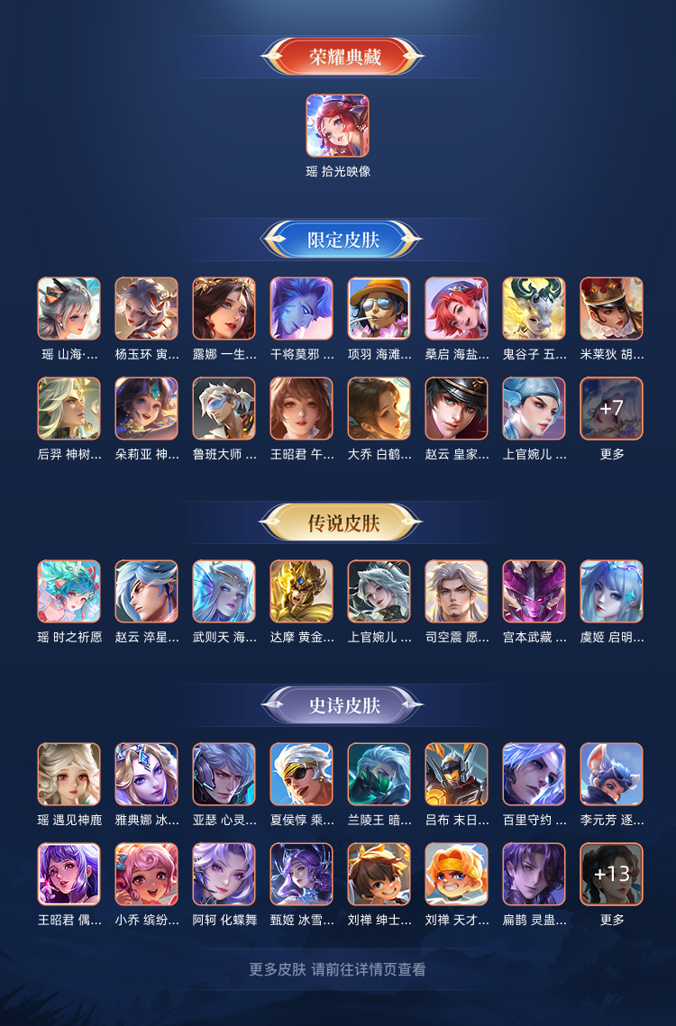 瑶全皮(含星元)朵莉亚全皮少司缘全皮@一典藏两无双四珍品@白鹤梁神女霜刀时之奇旅孙尚香孙策司空震年限