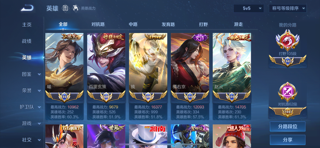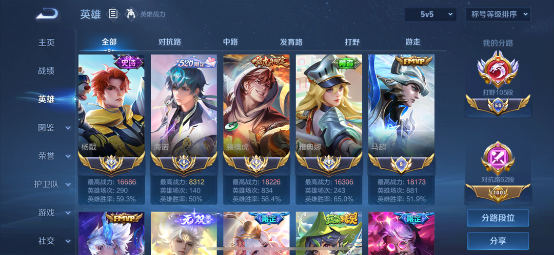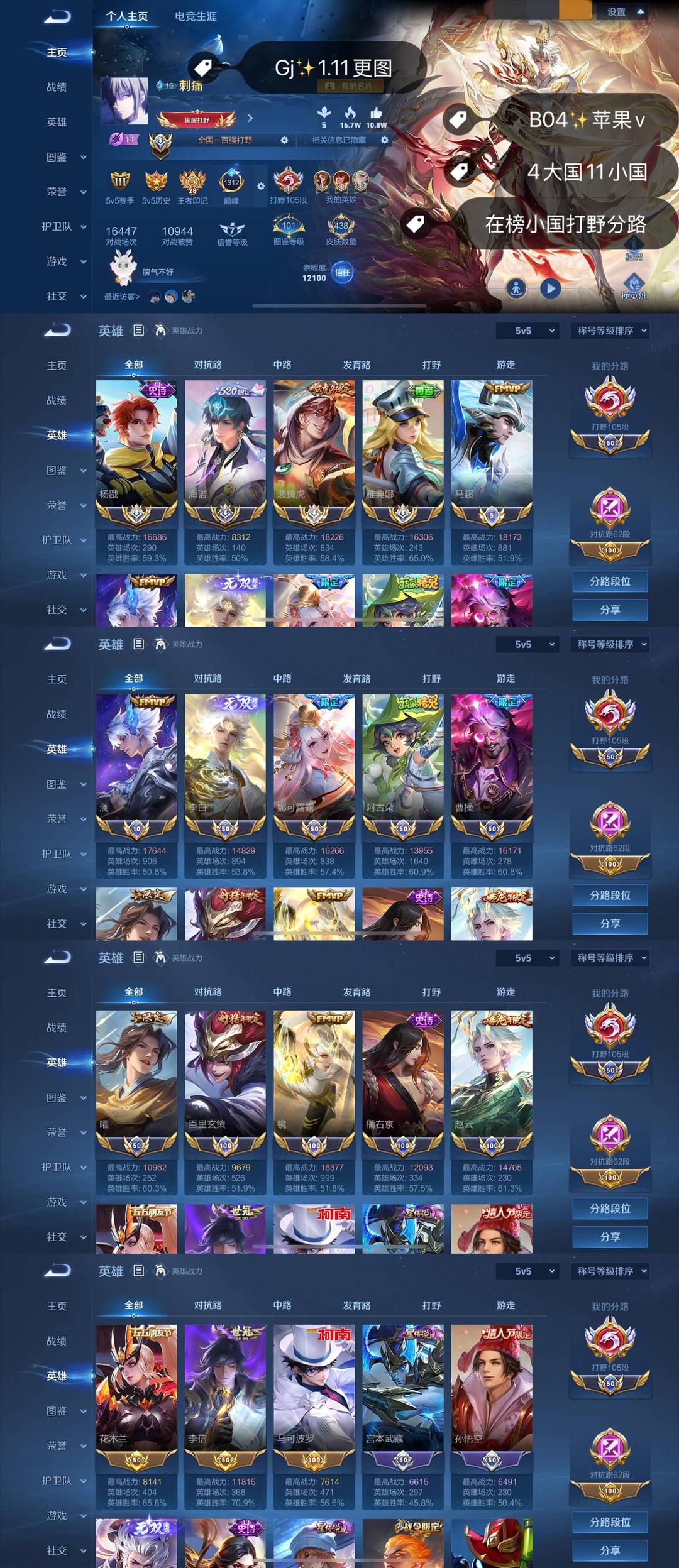 禁巅峰✨105段打野/历史小国服打野百段✨历史大国服老虎杨戬海诺雅典娜/数字标马超等