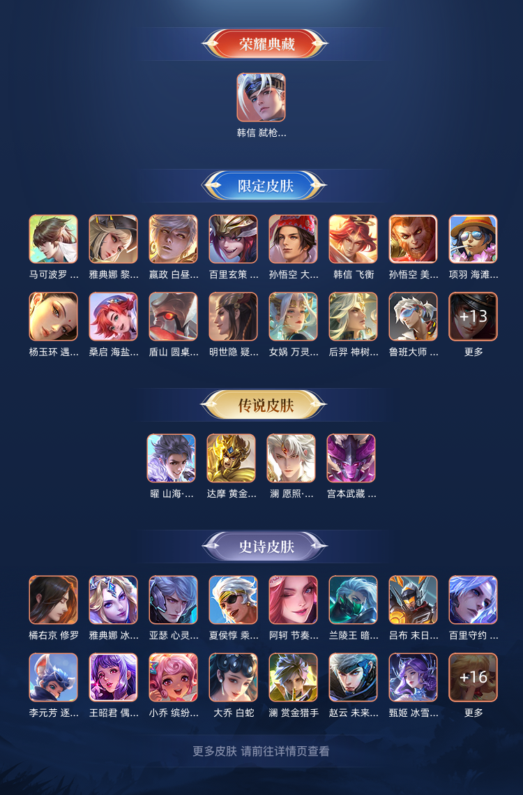 白虎志,韩信荣耀水晶,王昭君永恒水手月亮,马超无双飞将,宫本武藏地狱之眼加星元皮肤,镜的FMVP,