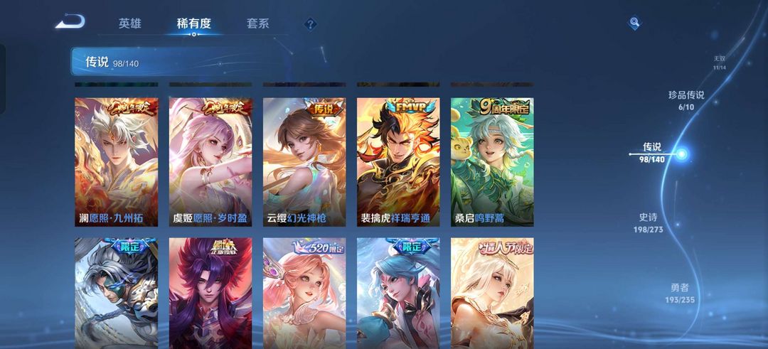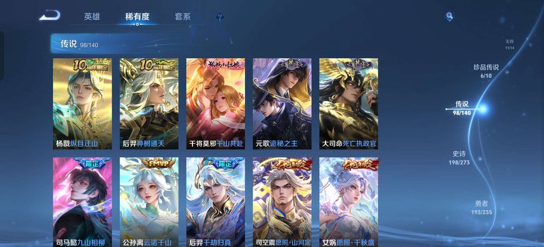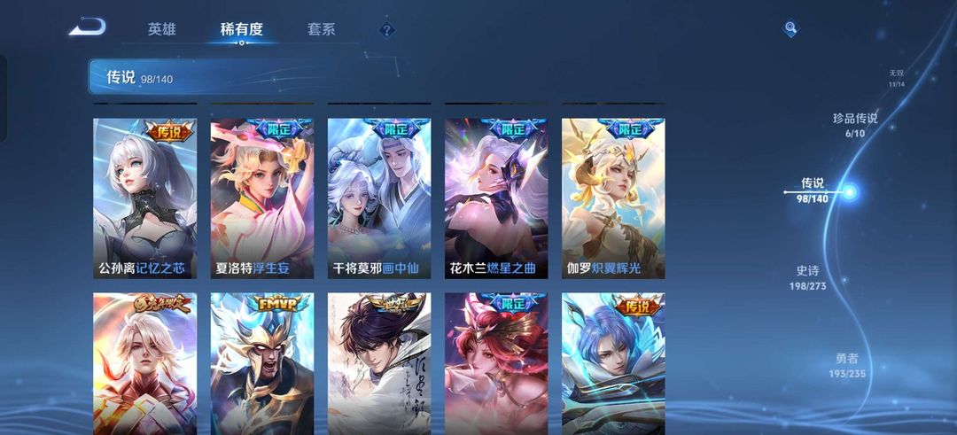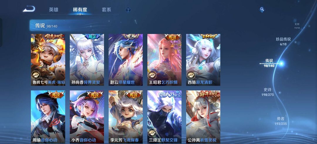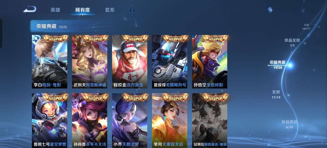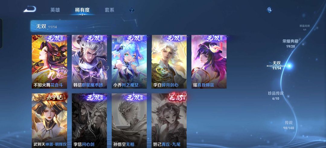 贵10,荣耀典藏差个安琪拉的,至尊宝,凤求凰,白虎志,紫瑶,貂蝉珍品无双,朵莉亚全皮,公孙离全皮