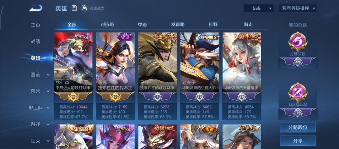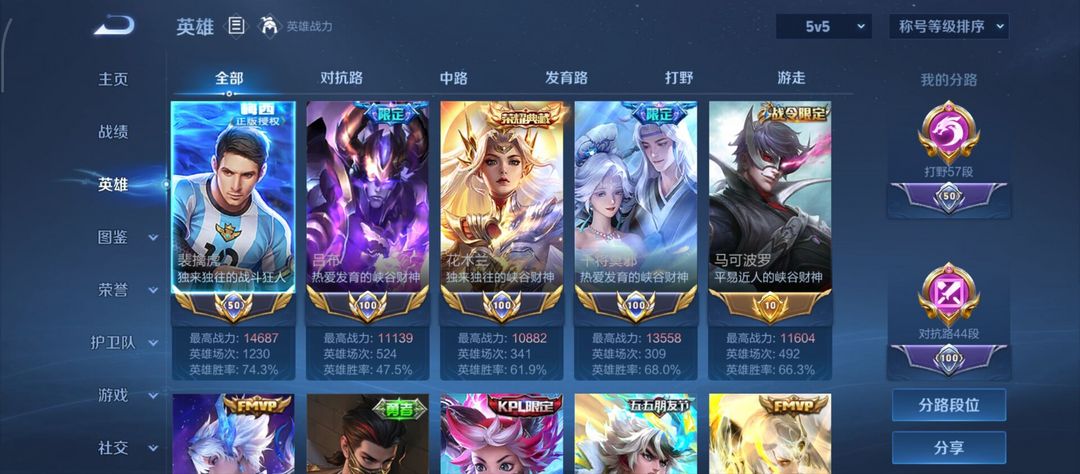 v10打野57段 魔方点亮 410皮4热门小国 11金标 1.46老虎1.36干将 多万战热门标 无