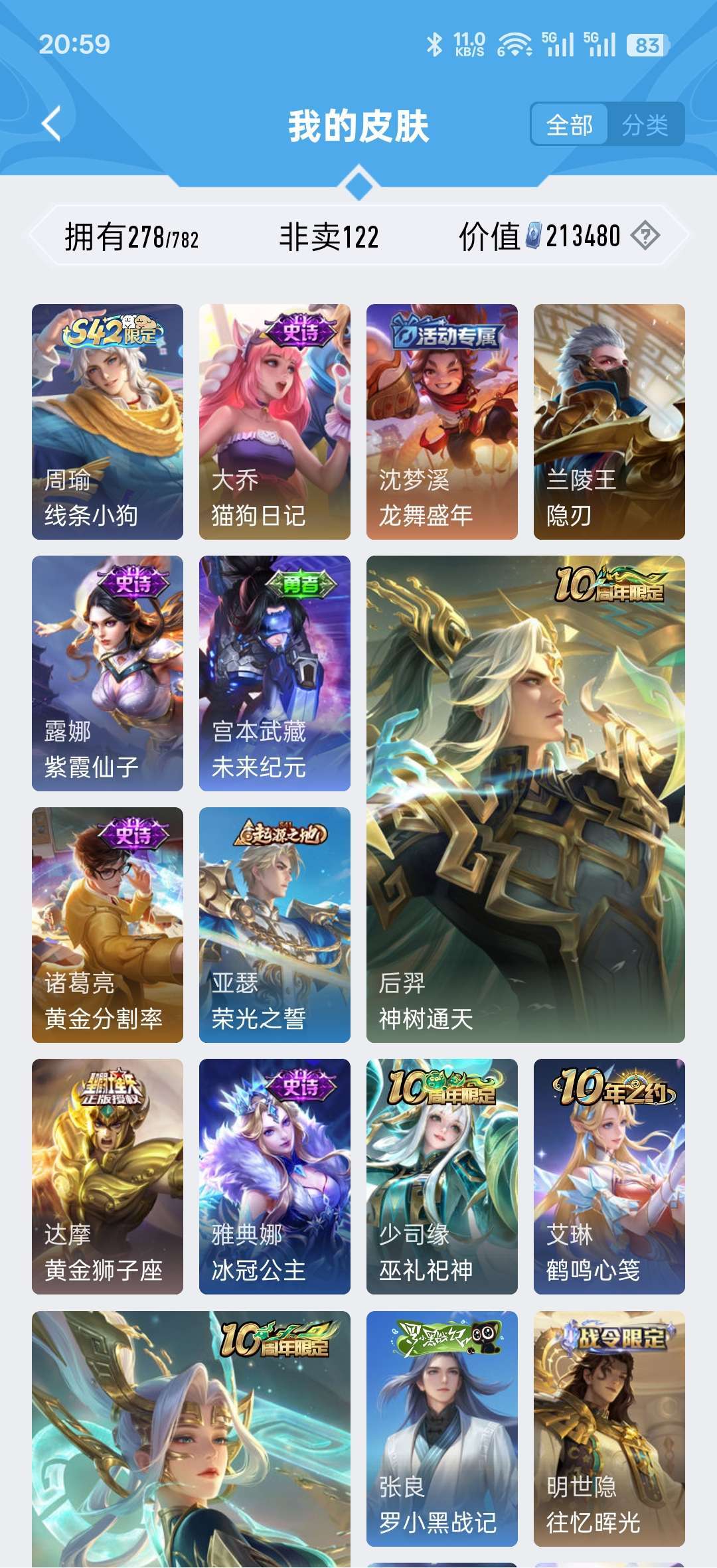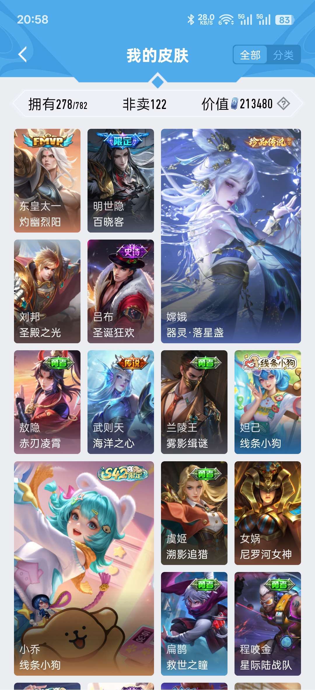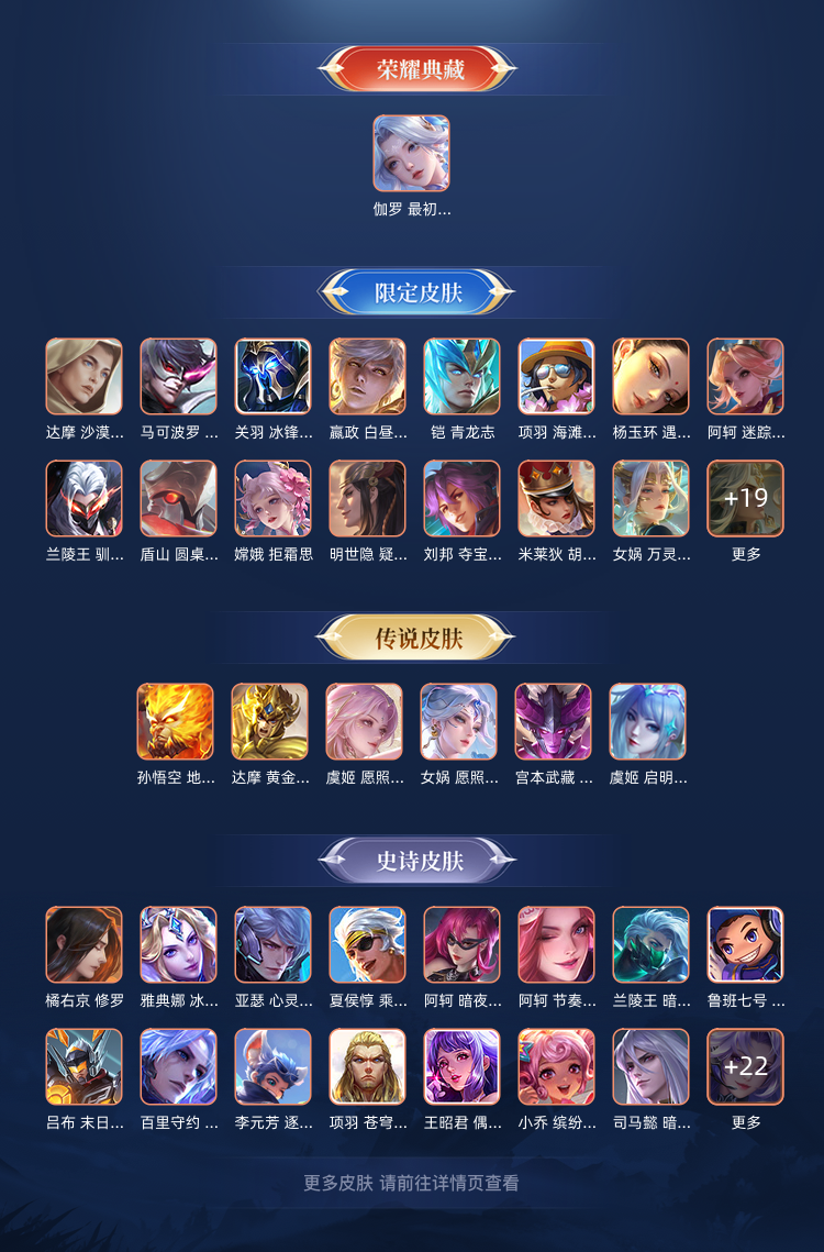 嫦娥珍品传说,伽罗荣耀典藏,凯青龙志,东皇fmvp,账号v等级8级