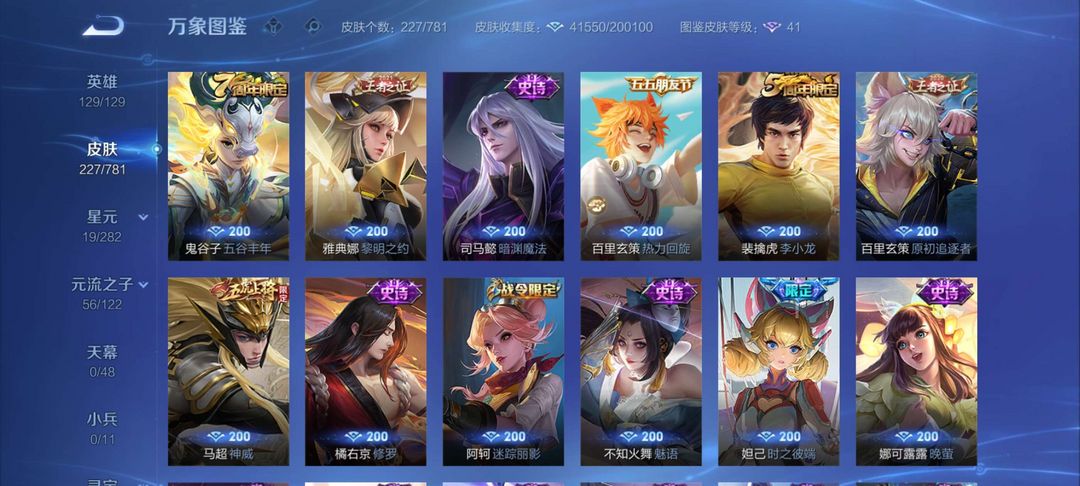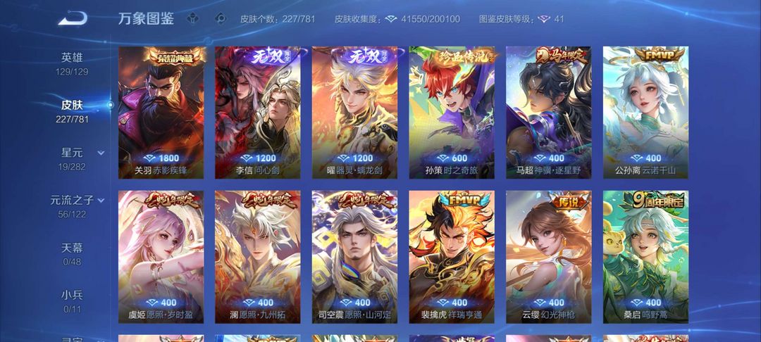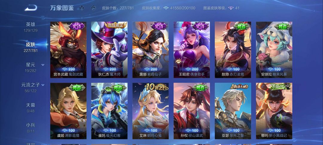 曜的无双李信的无双有武则天有关羽的荣耀典藏有刘备,还有宫本武藏的星元皮肤(不要动内部点券)
