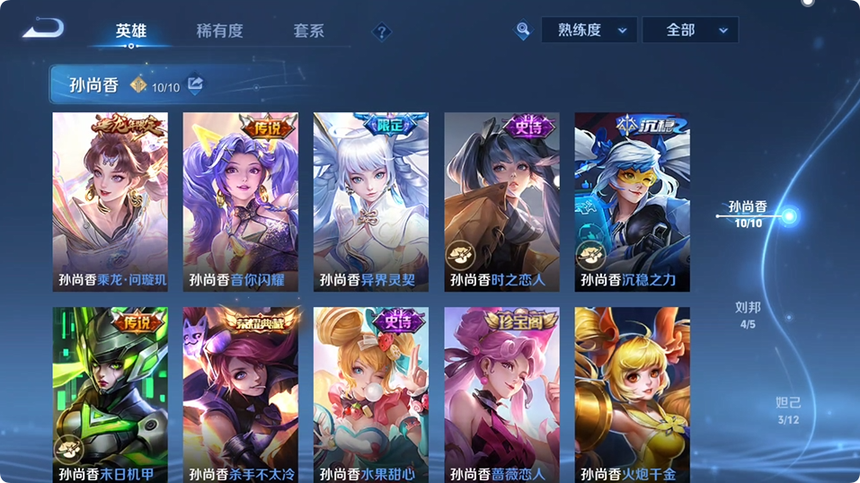 孙尚香全皮❥杀手不太冷❥乘龙·问璇玑❥蔷薇恋人❥音你闪耀❥末日机甲❥异界灵契