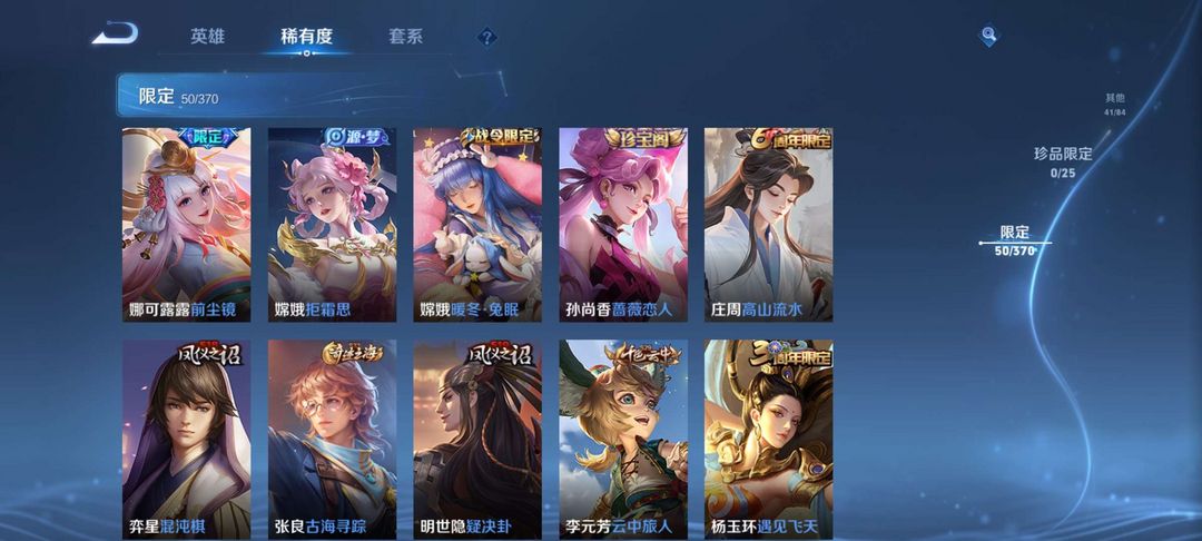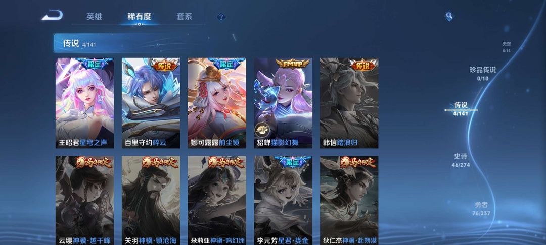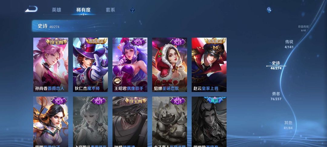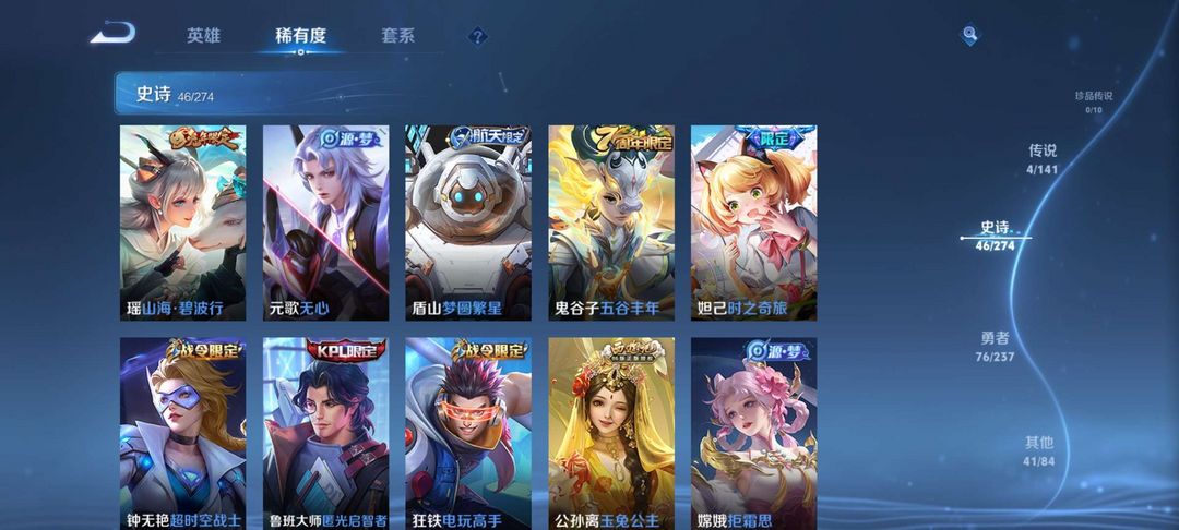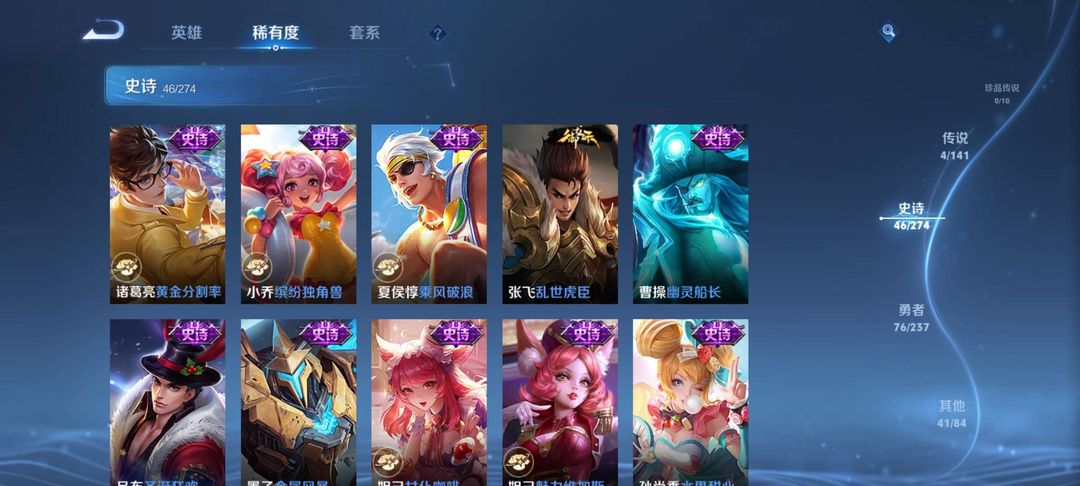 装备描述:一个女号,女英雄基本最少一个皮肤,男英雄皮肤略少