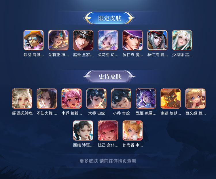 甄姬雪境奇缘/公孙离离恨烟/嫦娥落星盏/西施游龙清影星传说/朵莉亚马年限定/大乔时之奇旅