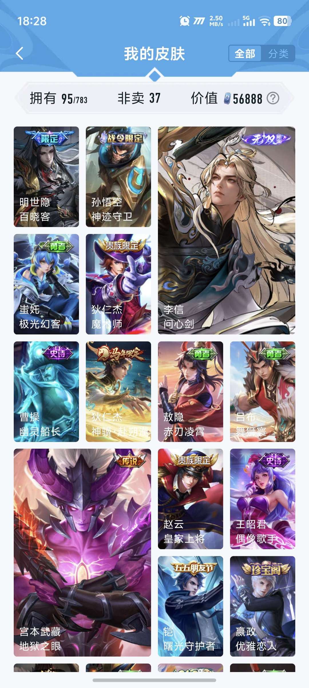 96皮/无双问心剑(击杀播报套装/动作/签名)/狄仁杰马年限定/明世隐限定百晓客
