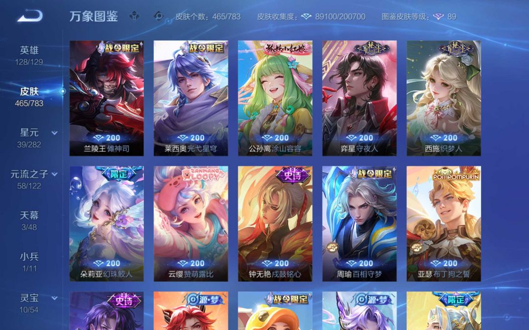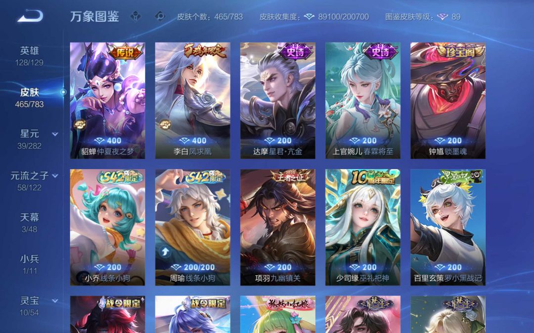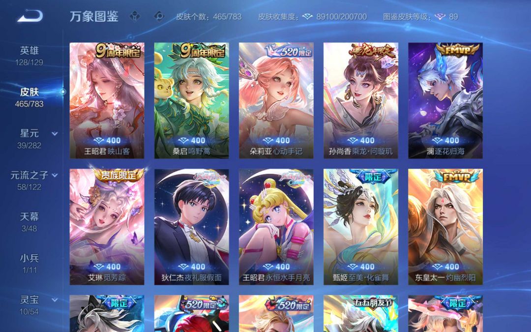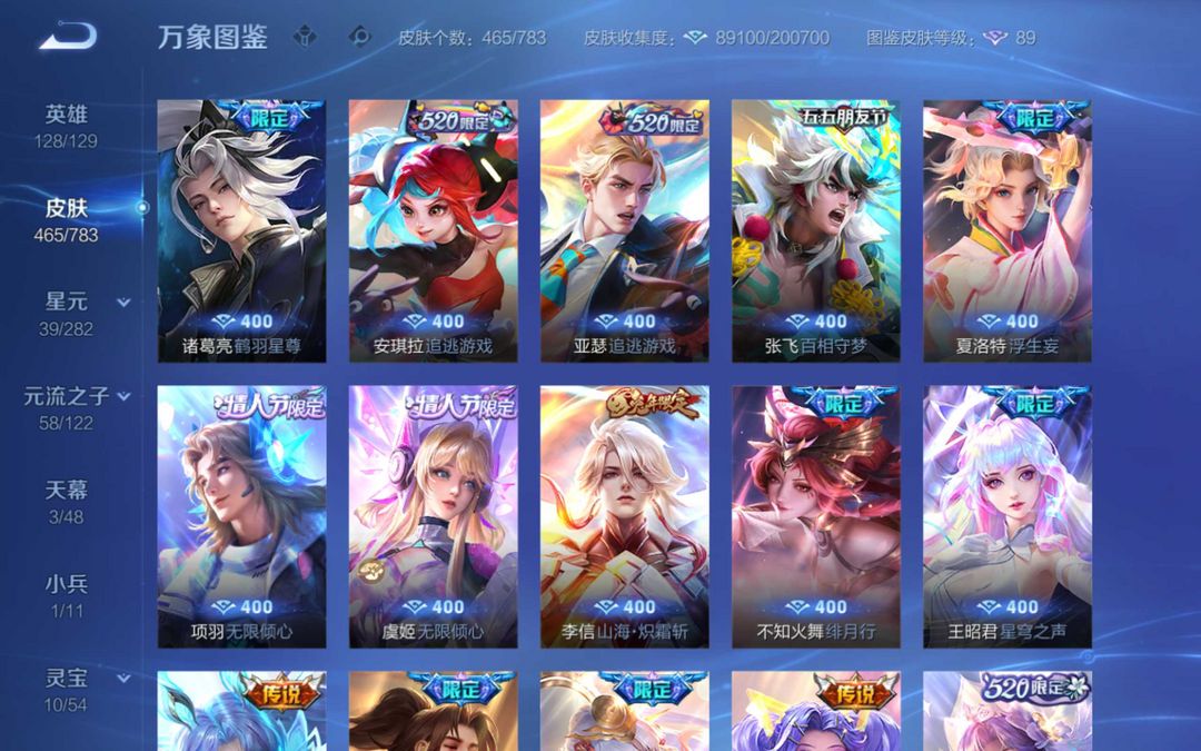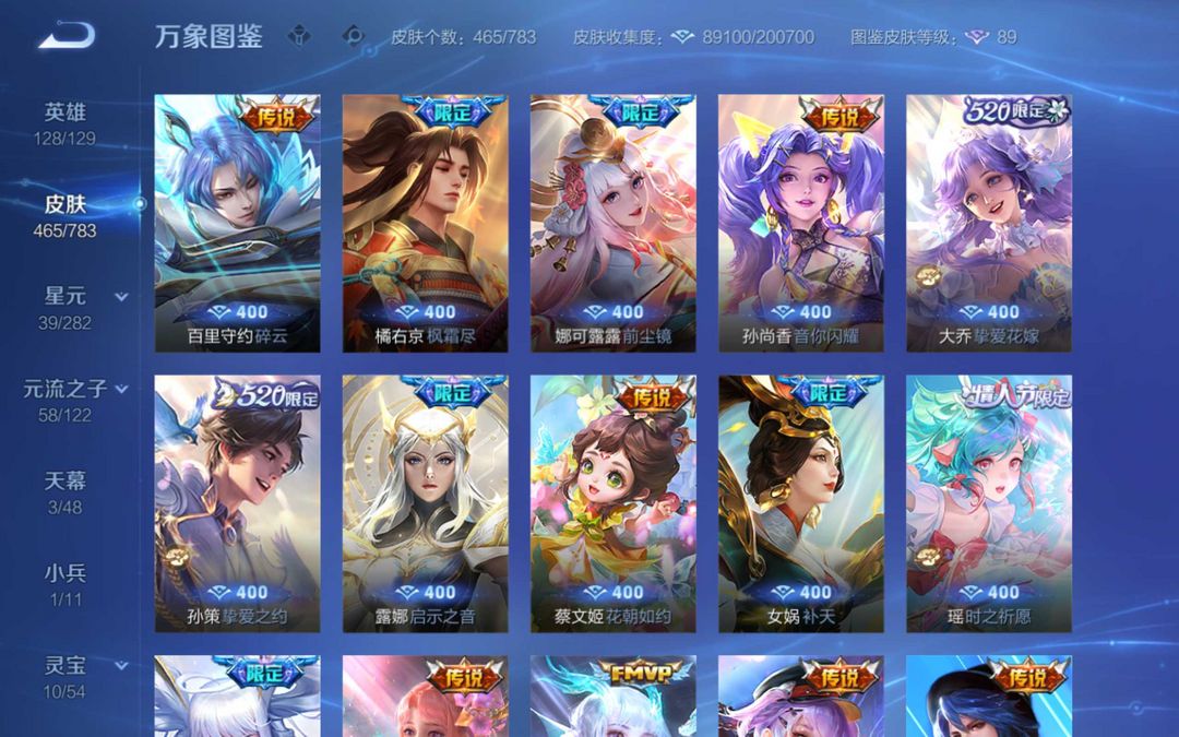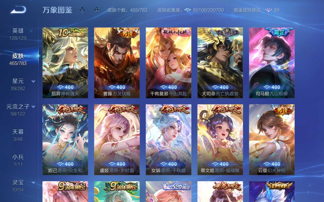 v10 安琪拉典藏 马限全套 貂蝉 夏侯惇 花木兰典藏 小乔妲己甄姬无双王昭君全妹子玩的漂亮号