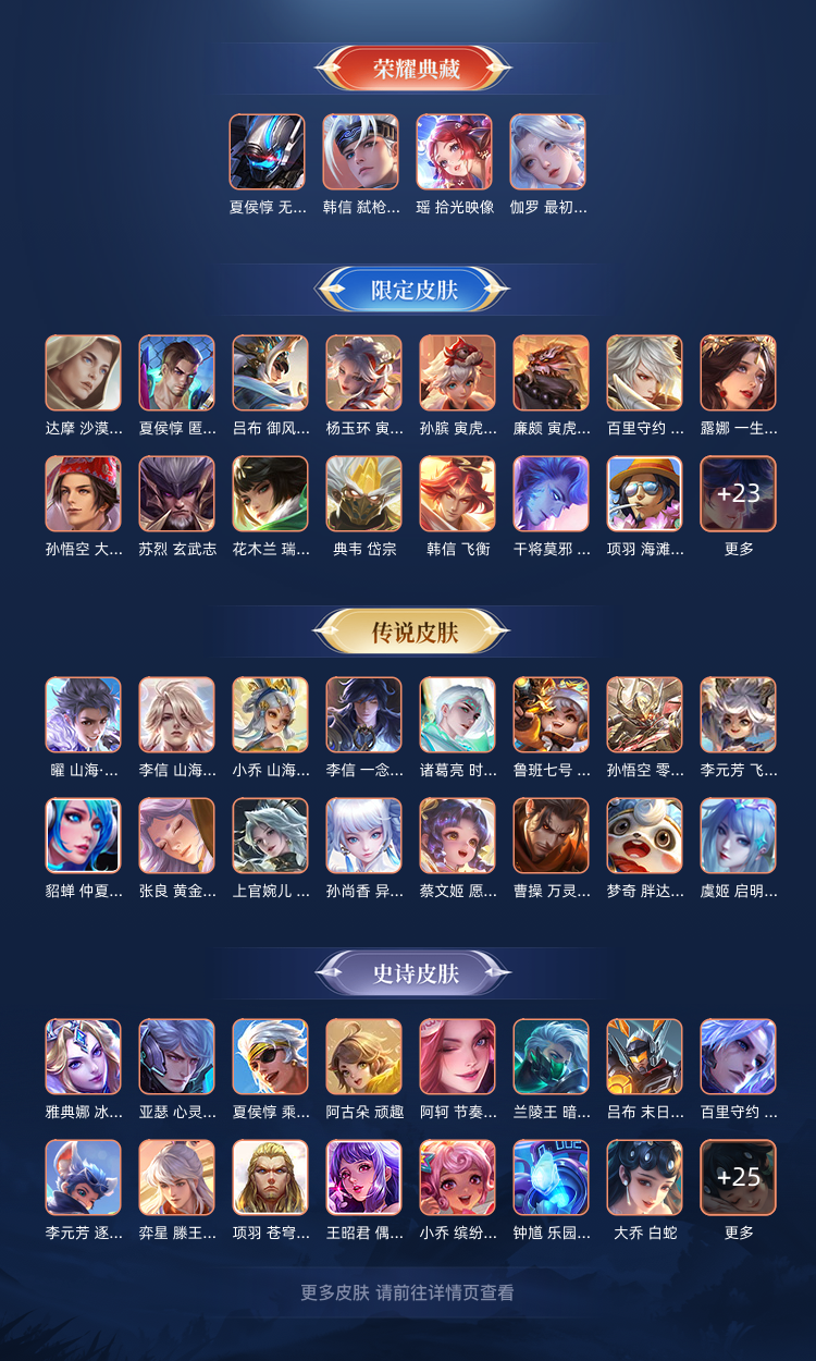 装备描述:v10.382皮肤33传说5珍品传说(孙策,嫦娥,马克,宫本,张飞)