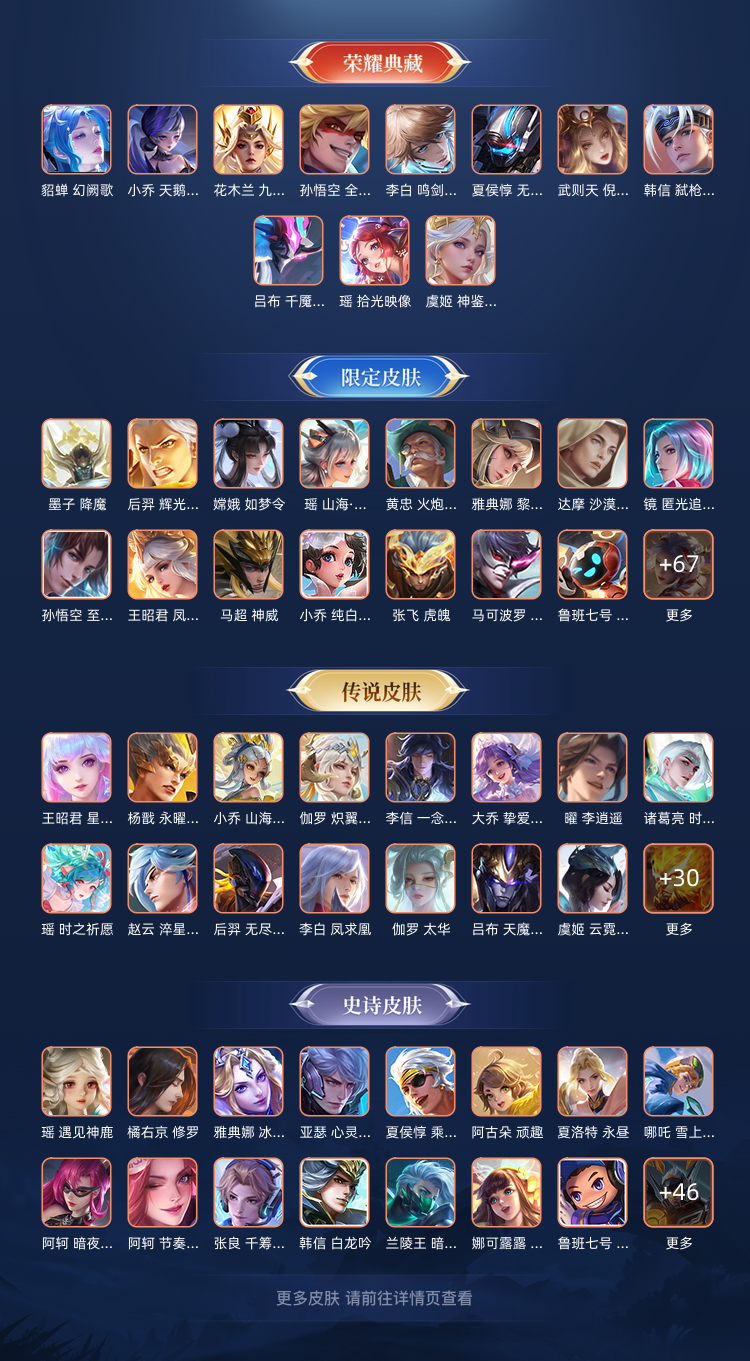 【644皮肤 贵族v10】典藏11 珍品传说9 无双8 限定274