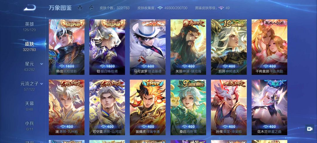 V8,318皮肤,2个荣耀典藏,18个传说,119个限定,至尊宝,怪盗基德