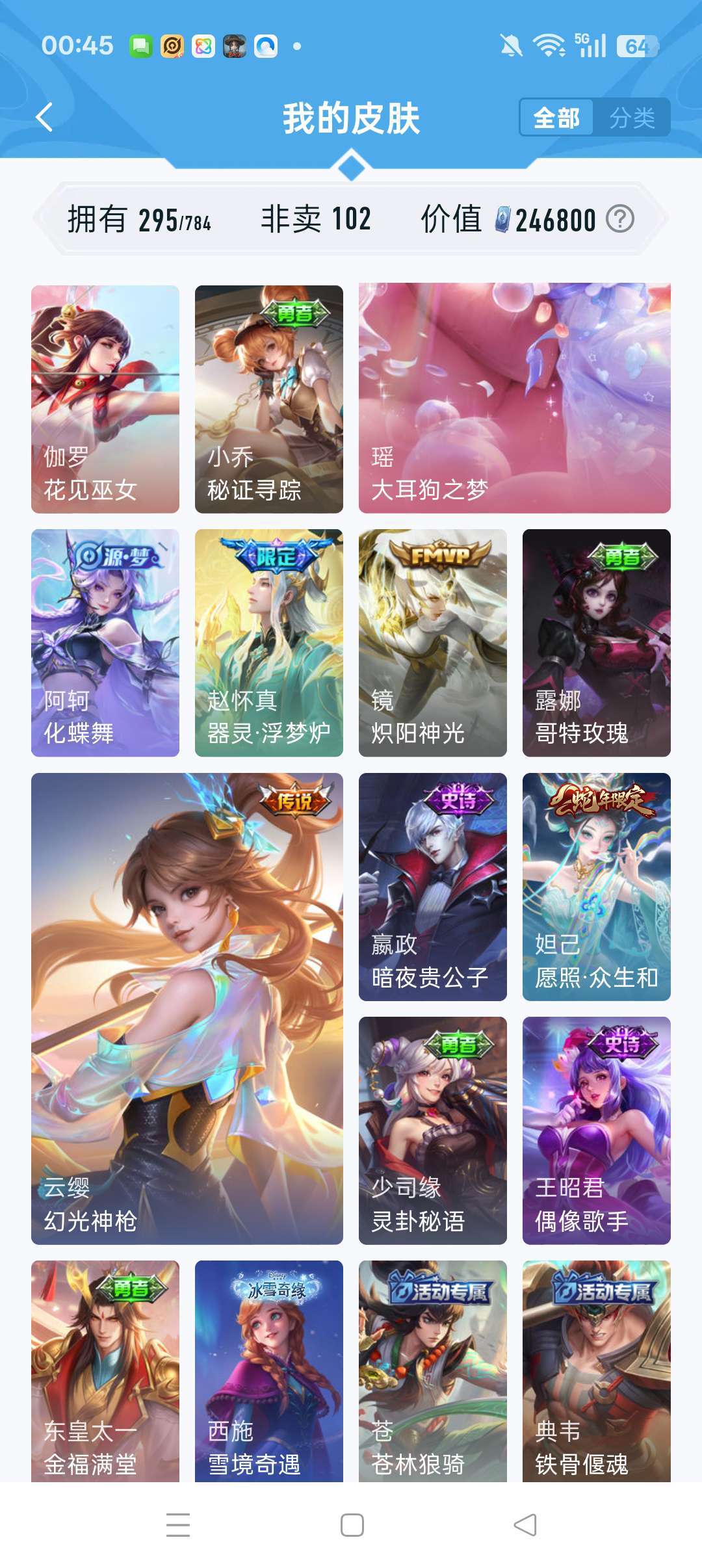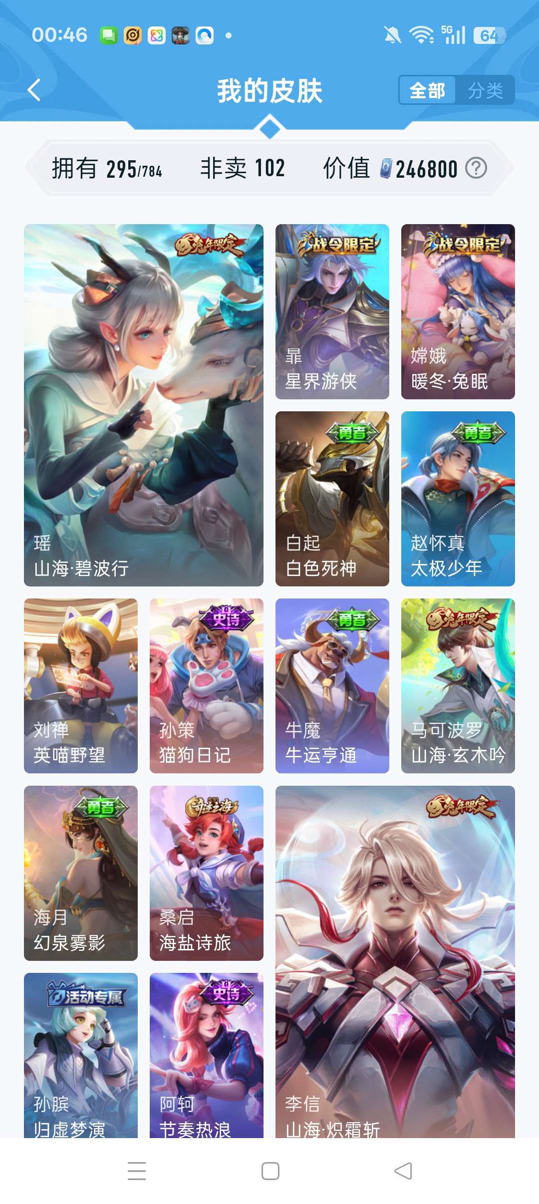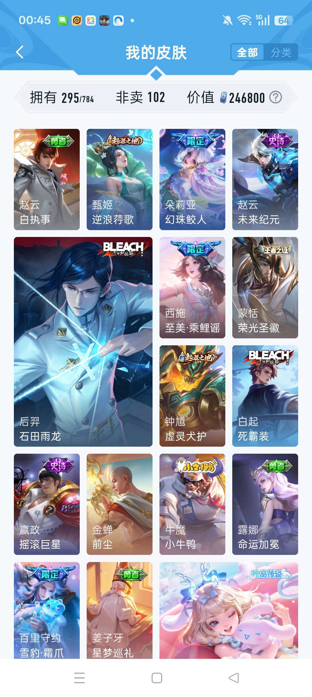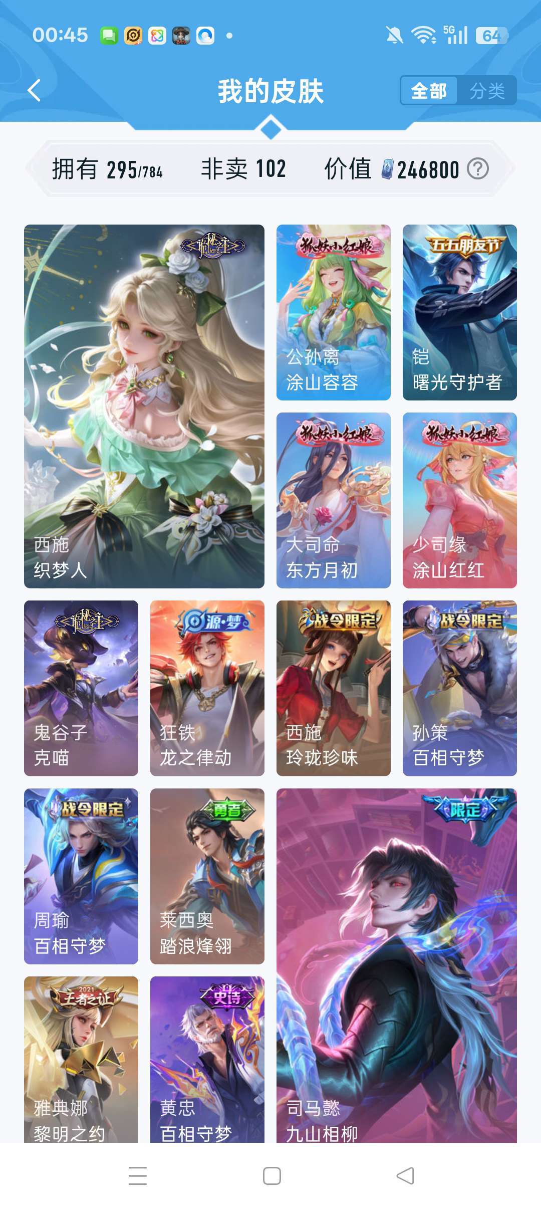怪盗基德,深海之息,马超神威,瑶的大耳狗,中辅皮肤较多