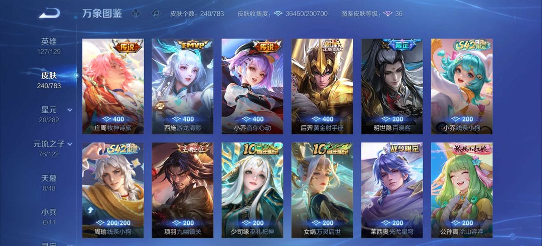 瑶荣耀典藏,朵莉亚马年限定,小乔传说,西施fmvp,庄周传说[禁言禁好友]