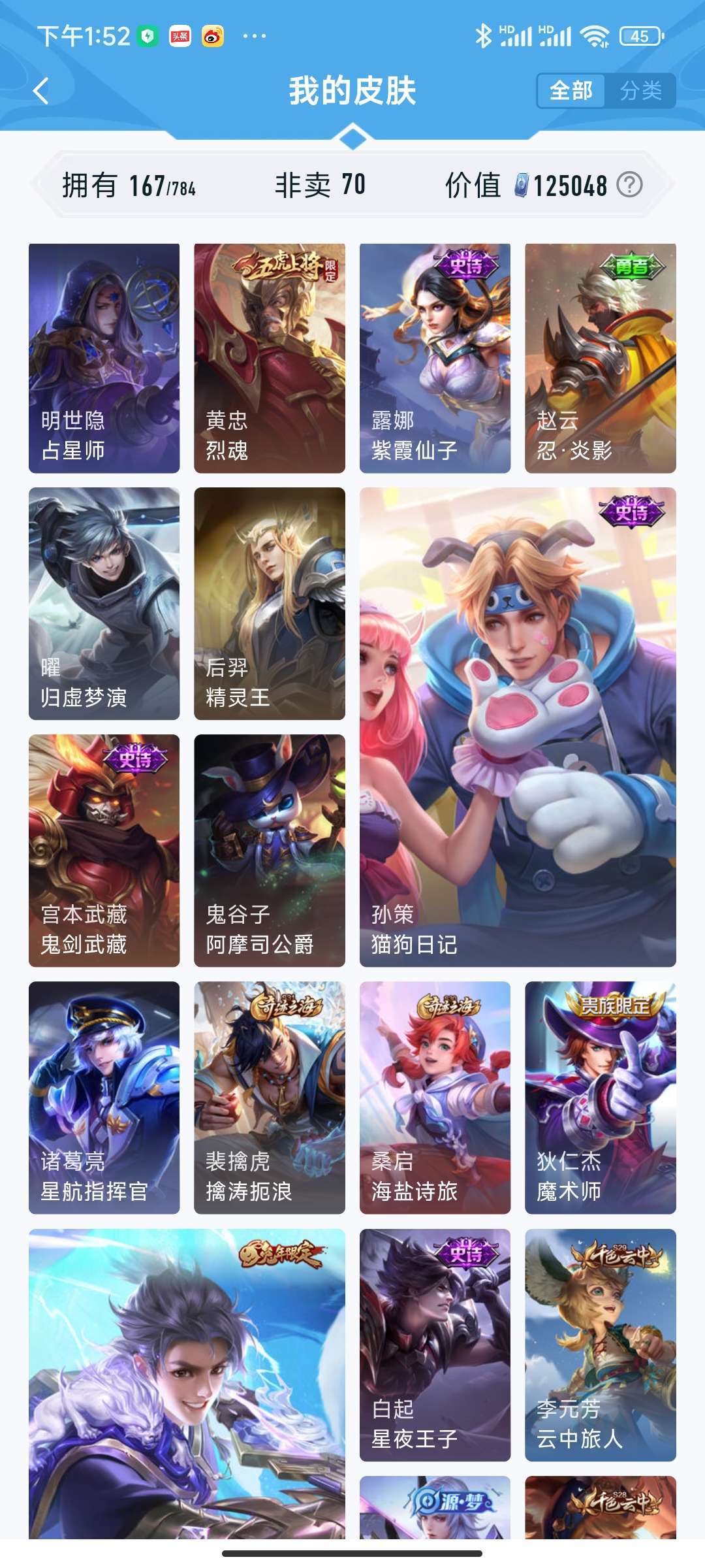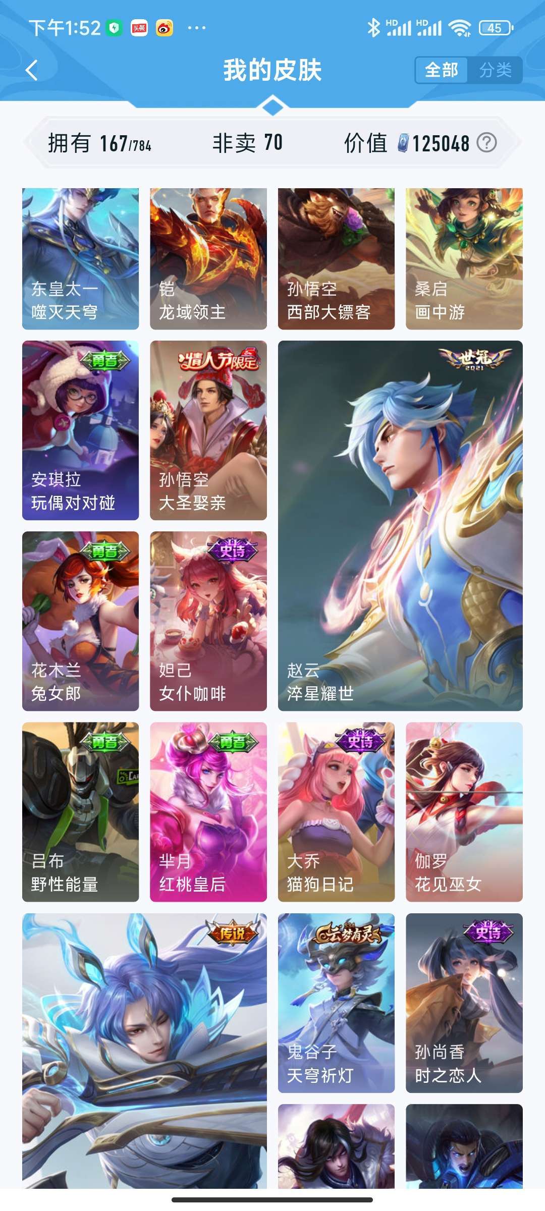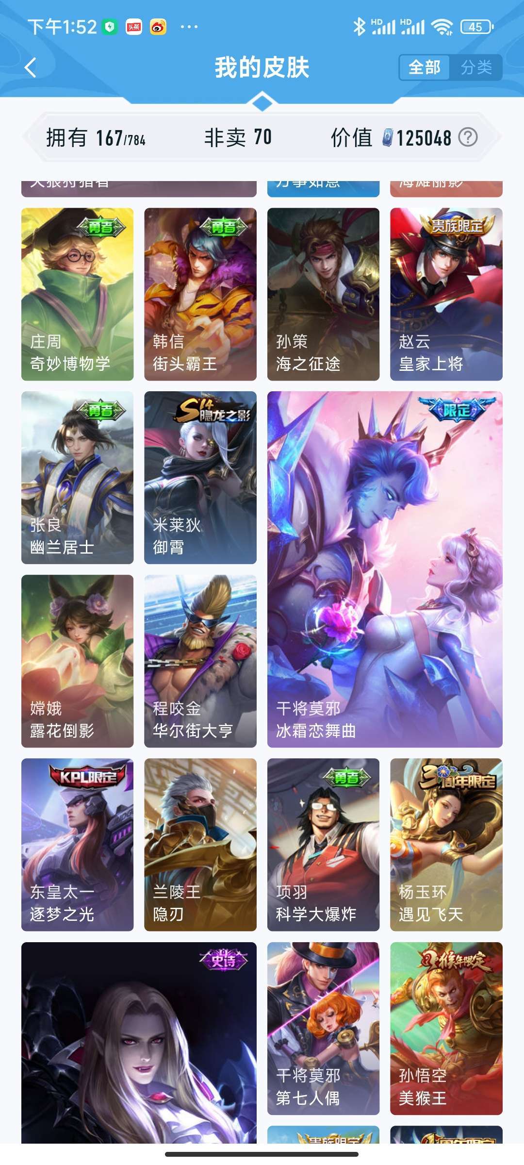装备描述:蛇年虞姬 女娲 兔年 耀 干将 冰雪节限定 关羽 冰封战神 其他皮肤自己看