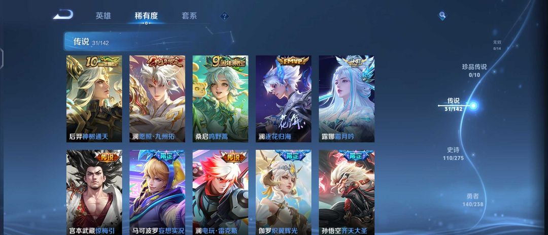限制: 撤单率<70%才可租用此帐号装备描述:9省标宫本澜18万战9典14星元37传说满限定FMVP.打野70段发育60段神鉴启示录银白九霄
