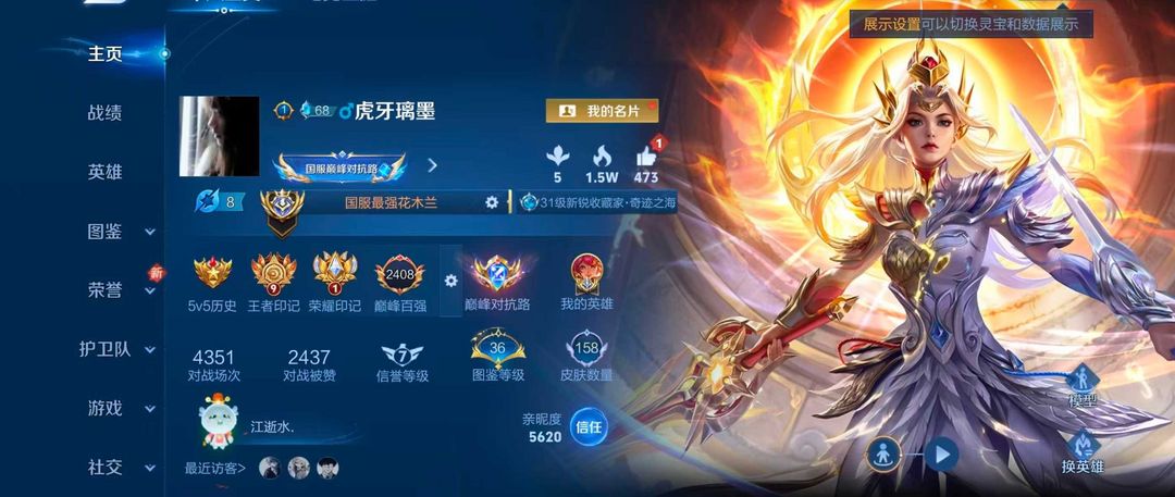巅峰95名⭐️正式服12月大国服花木兰⭐✨高战力胜率⭐️典藏皮肤⭐巅峰百强闪电框