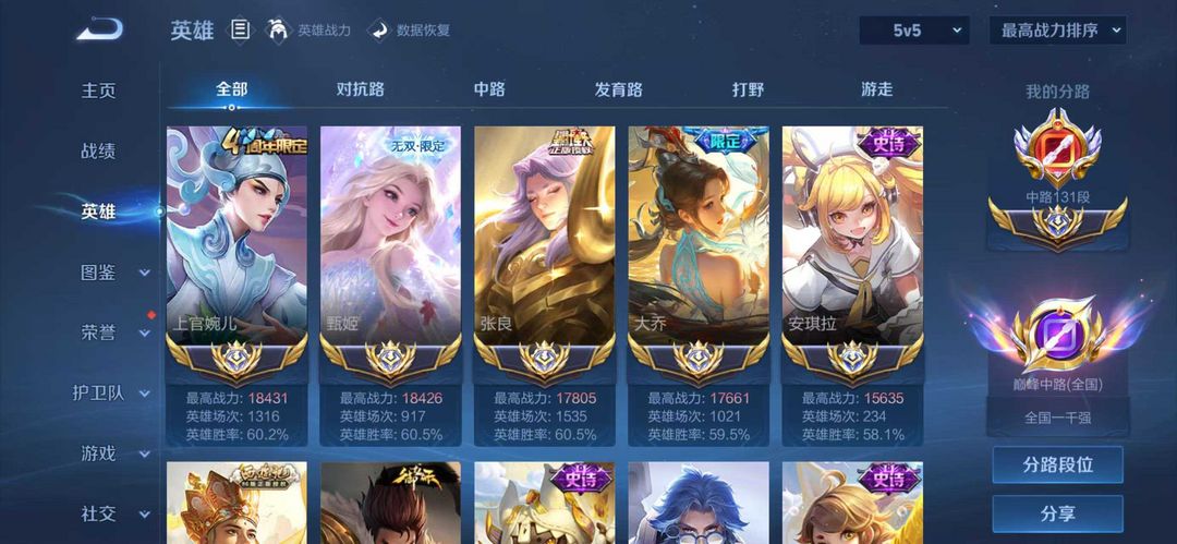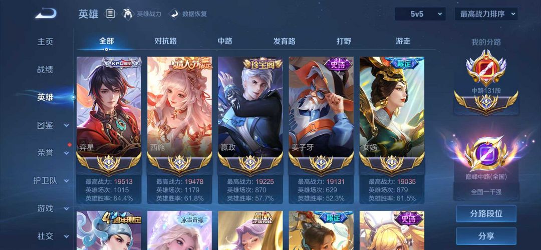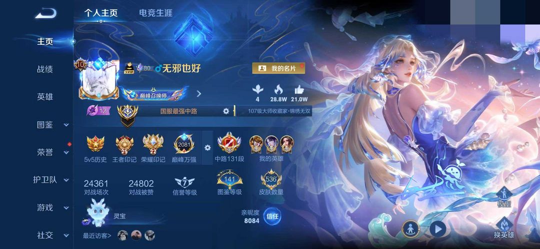 巅峰万强✨2月在榜国服131段中路✨颠倒童话魔镜✨4个2.1万战力✨抖音画师学长主播号