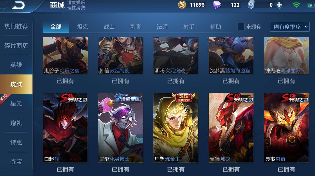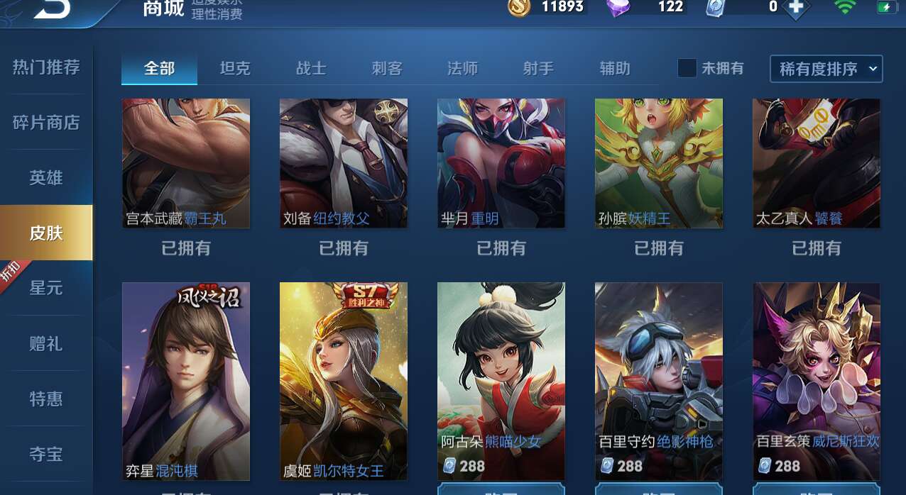 【黄金单子带妹专用】【可排】禁言 英雄 59皮肤29