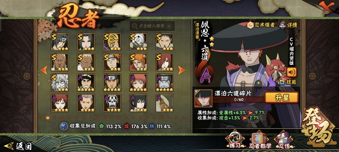 36s✨47a✨侠隐佐助✨漂泊带土✨天道超✨漂泊佩恩✨仙人巳月✨金身水门✨千万战力熊猫蛞蝓满级霸体