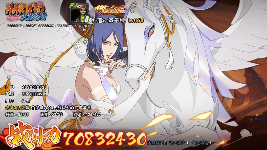 别点我声望!✨7000万战力✨安卓Q大区榜一✨全服最高战力✨全服最高属攻✨全忍者全装扮✨无上的忍道