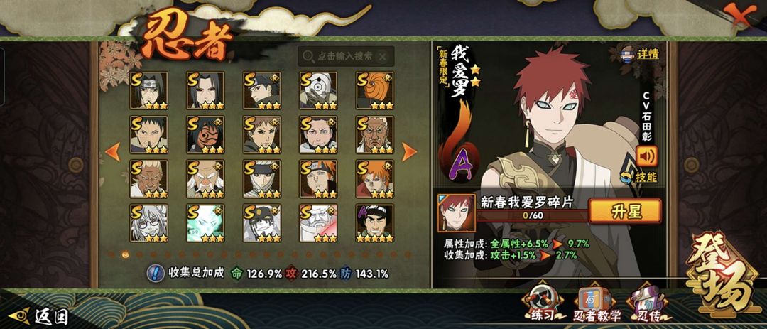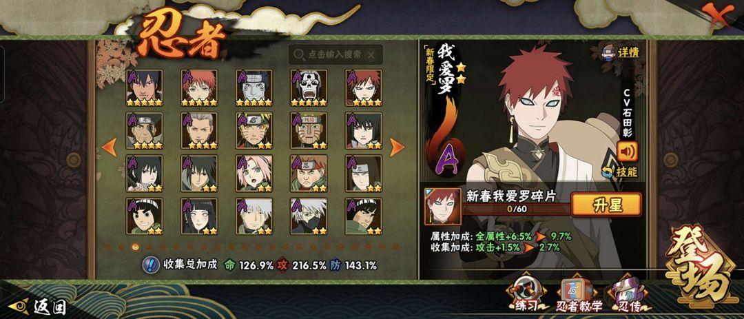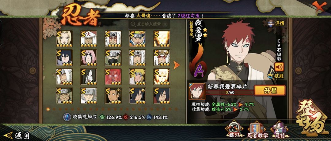 装备描述:忍战带土 天道超 新春小南 死三代 太子爷 外星人 新春阿斯玛 新春我爱罗