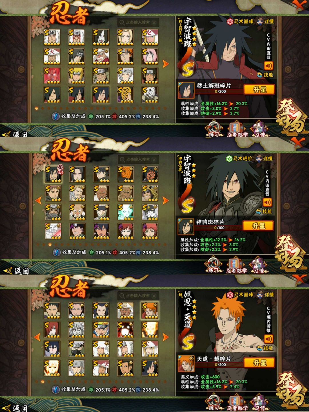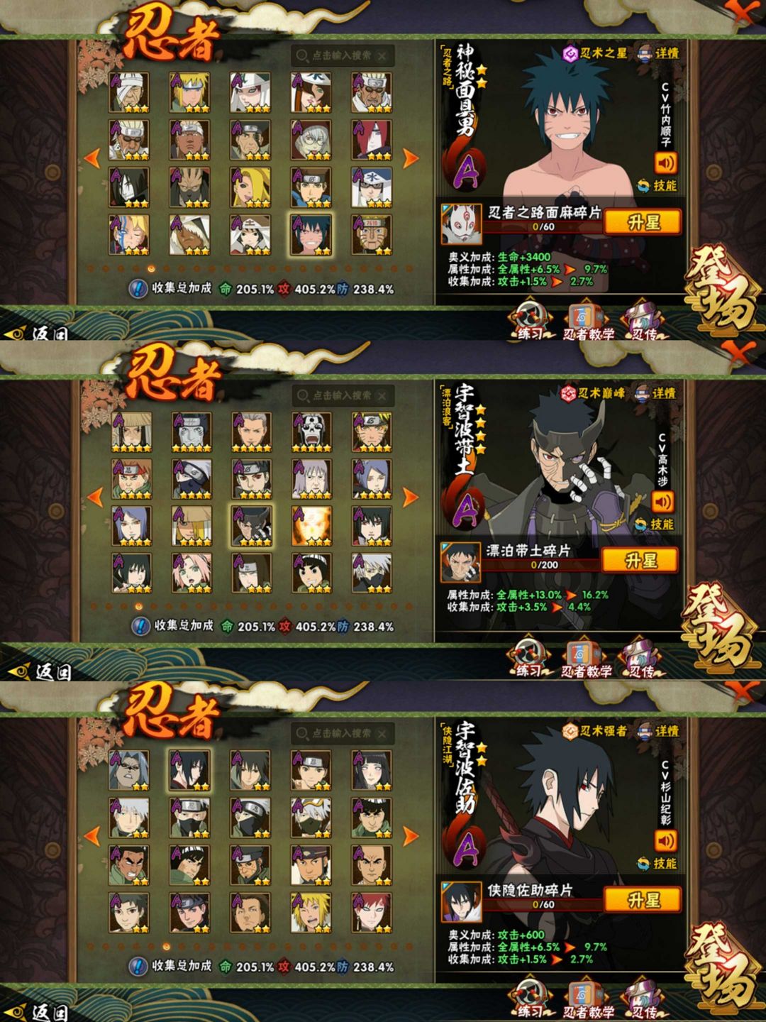 神驹阿斯玛全套♈神驹斑全套♈侠隐佐助全套♈五影会谈斑♈4420万战力忍界传说♈全忍者♈75级魅力顶配