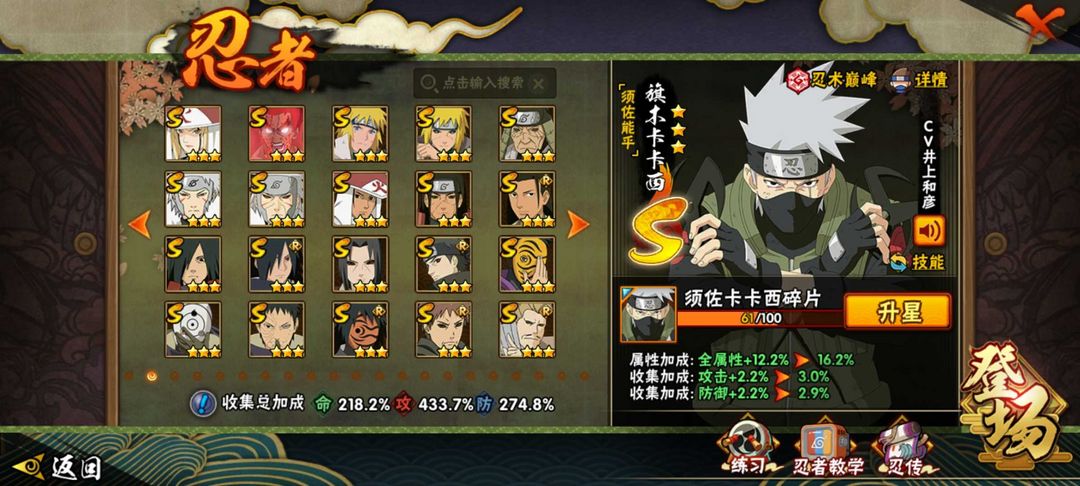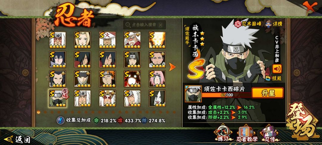 4300万无上战力顶级号3000属攻侠影佐助全套,侠影大野木全忍者一全通灵,全装扮77级魅力