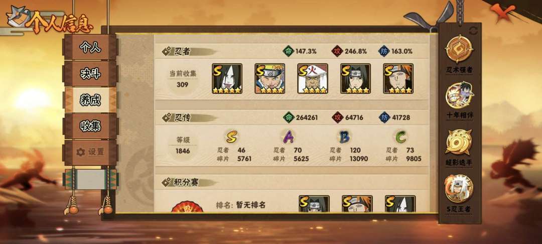 六道带土⭐漂泊带土⭐黑绝⭐漂泊小南⭐神驹班⭐忍战带土⭐须佐卡卡西⭐须佐止水⭐漂泊佩恩46S⭐70A