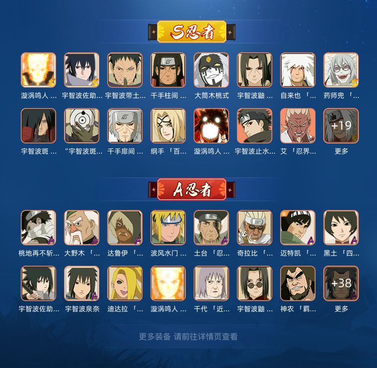 装备描述:248忍者✨33S✨53A✨有熊猫✨蛞蝓✨新水✨新春鼬✨金银角✨六尾✨大筒木桃式✨须佐止水。可以排位