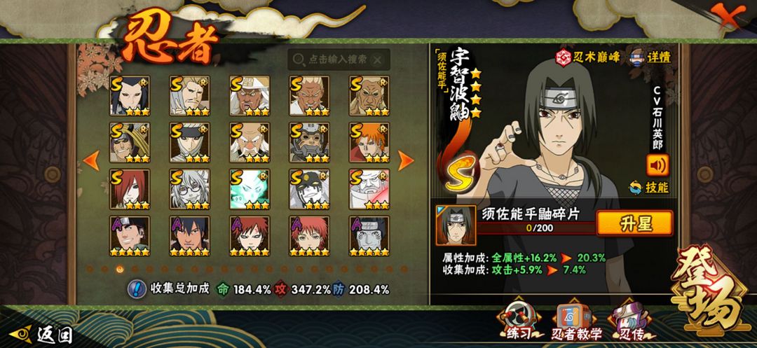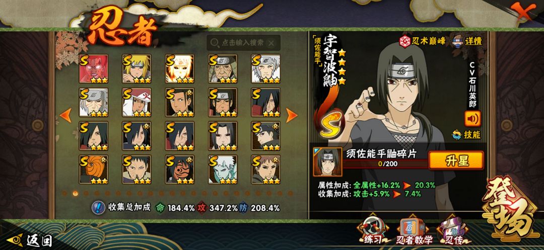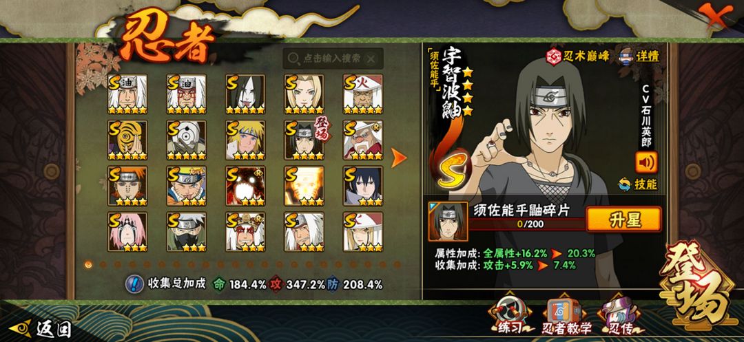 装备描述:拥有全部 S忍(含五影斑、六尾鸣人等高稀有忍者)。 租客须知:禁止恶意毁号、开喜欢本账号请点 ☆收藏☆ 方便下次租用,谢谢光临惠顾!