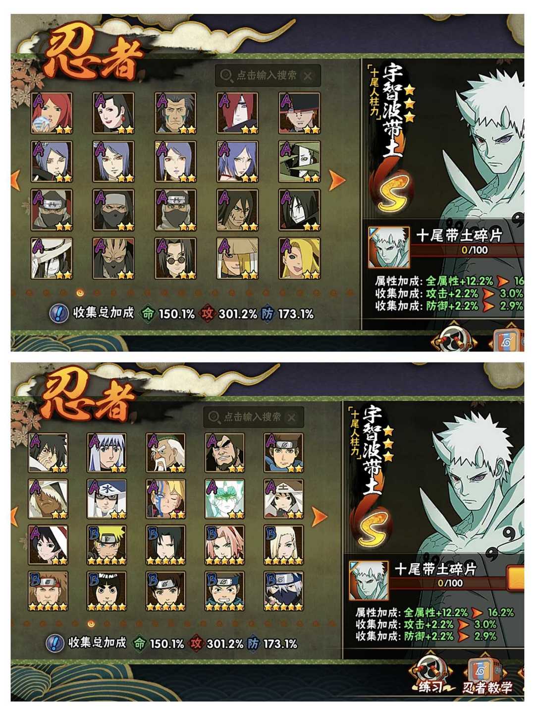 52s 84a 十尾带土五影斑夏日黑土 所有忍法帖都有全高招s全高招a多个点卷a