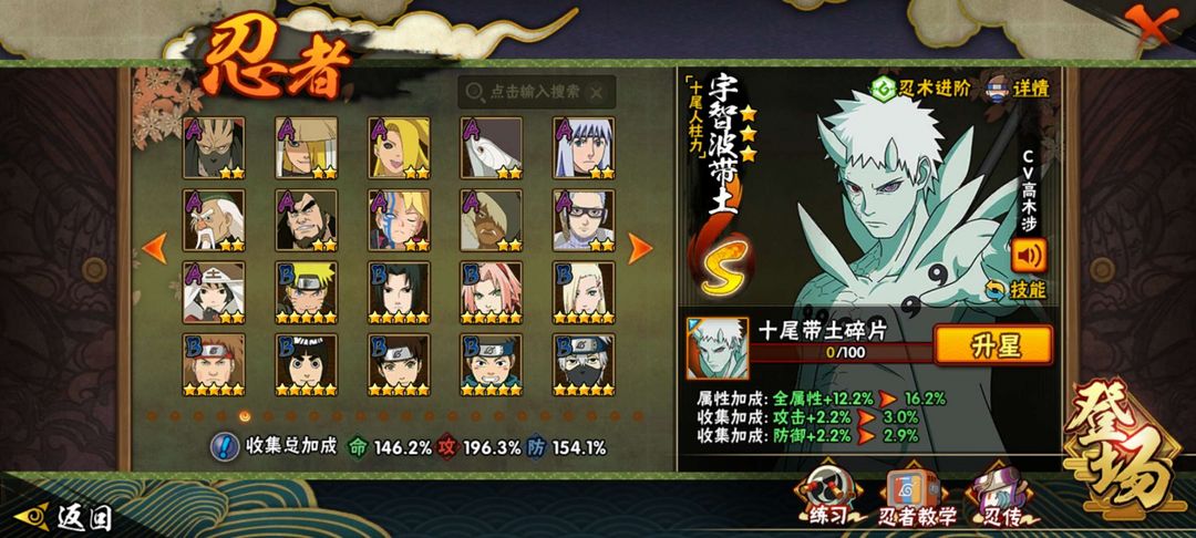 2480万战力可带团本✨33S✨58A✨十尾带土✨暴怒小孩✨漂泊扉间✨阴水门✨所有高招A✨